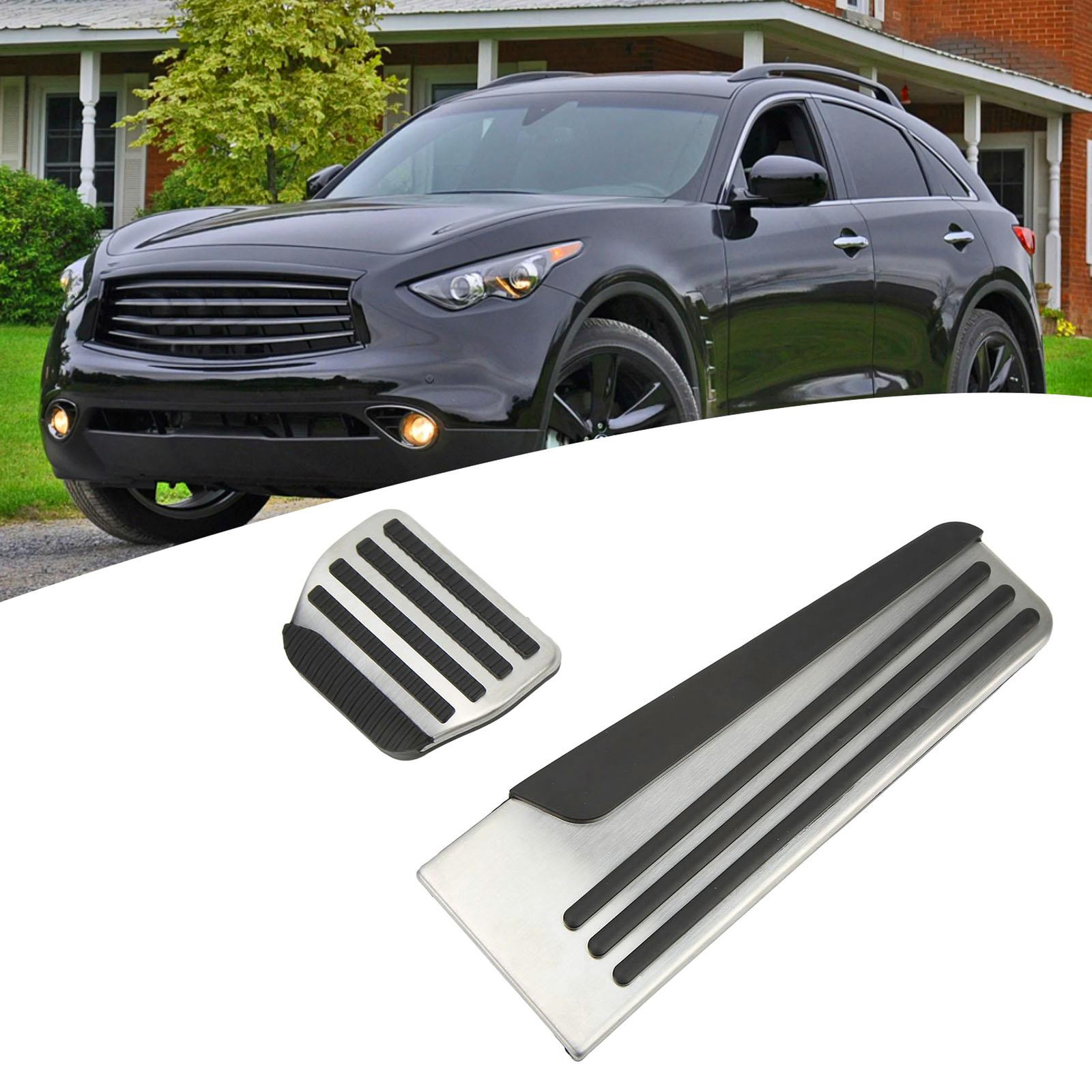 Featrues: 1、Perfect Fitment: Foot rest plate cover is replacement for Infiniti Q50 Q50L QX70 Q70 Q60 G35 G37 EX35 EX37 FX35 FX37 FX50 2011?2021. 2、High Quality Material: Car pedal pad is made of high quality rubber and metal material, rustproof, waterproof, high strength and durable. 3、Nonslip Design: The surface of the foot rest pedal cover is nonslip, increasing friction between the sole and pedal to prevent sliding. 4、Safety: Car brake pedal has been tested and will not affect your driving, make you more comfortable driving experience, improve safety. 5、Easy Installation: No drilling or welding required, easy to install, convenient for using, save your time and energy. Specification: Item Type: Car Pedal Material: Rubber+metal Fitment: Replacement for Infiniti Q50 Q50L QX70 Q70 Q60 G35 G37 EX35 EX37 FX35 FX37 FX50 2011‑2021 Package_list: 2 x Car Pedal