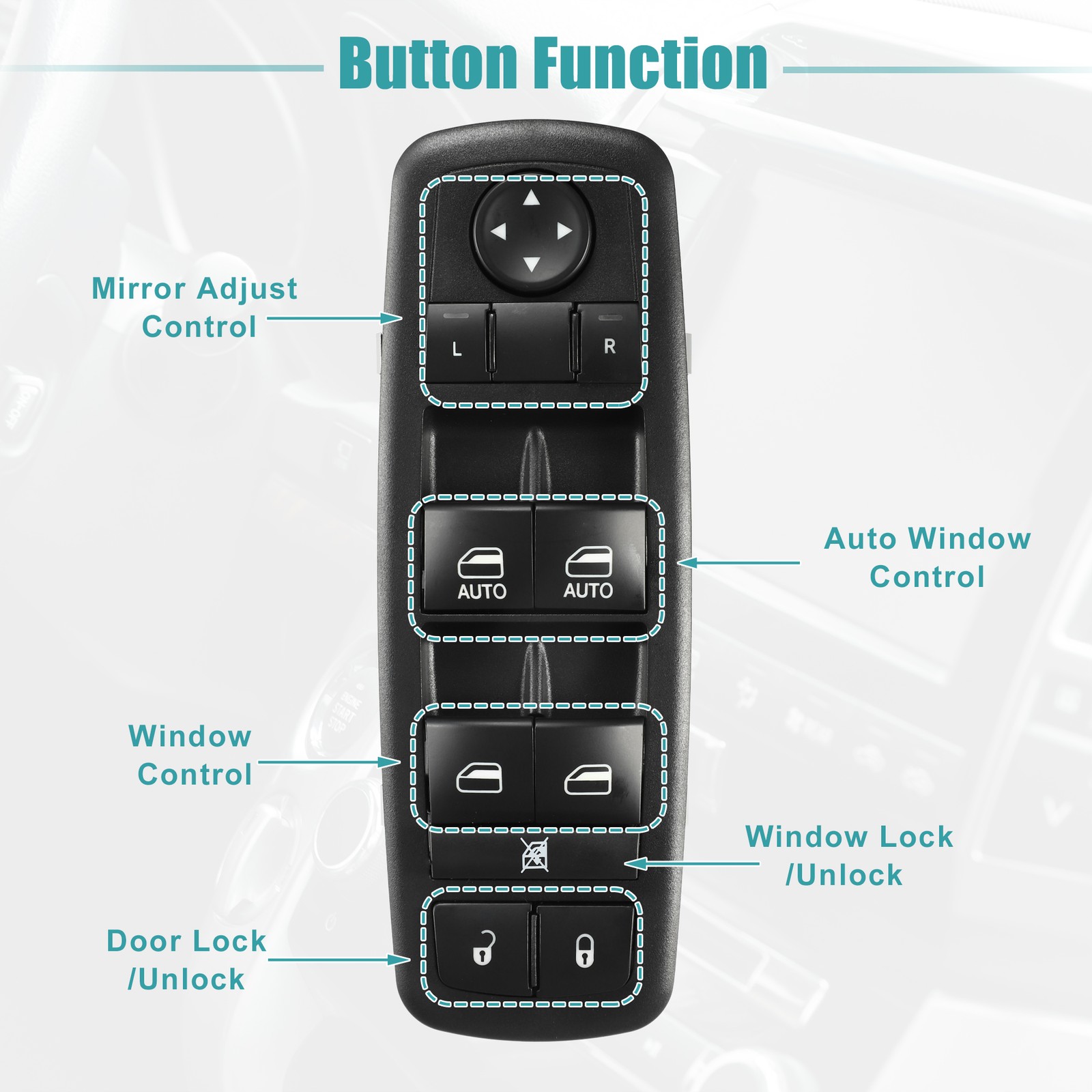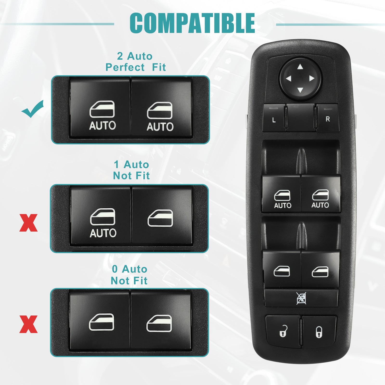 Document Features:The car power window switch is used to control the window.Easy to use, installed in a few minutes. Directly replace the old or broken power window switch.Made of plastic and metal, durable for your car.It has a good fit, and would not break or crack easily during use.Please make sure that the OE number you need with our consistent before you order it.OE Number:68212783AB/68212783AAThis is a non-OEM product, accessory only!Specifications:Number of Pins: 12Placement on Vehicle: Front Left Driver SideButton Function: Window Lock/Unlock, Door Lock/Unlock, Window Control, Auto Window Control, Mirror Adjust ControlColor: BlackMaterial: Plastic, MetalSwitch Size: 18x6.3x5.5cm / 7.09''x2.48''x2.17''(L*W*H)Fit for:for Ram 1500 2014 Big Horn, Express, Laramie, Laramie Limited, Laramie Longhorn, Lone Star, SLT, Special Service, Sport, 3.0L V6 - Diesel, 3.6L V6 - Flex, 5.7L V8 - Gasfor Ram 1500 2015 Big Horn, Express, Laramie, Laramie Limited, Laramie Longhorn, Limited, Lone Star, SLT, Special Service, Sport, 3.0L V6 - Diesel, 3.6L V6 - Flex, 5.7L V8 - Gasfor Ram 2500 2013 Big Horn, Laramie, Laramie Longhorn, Lone Star, Power Wagon, SLT, 5.7L V8 - CNG, 5.7L V8 - Gas, 6.7L L6 - Dieselfor Ram 2500 2014 2015 Big Horn, Laramie, Laramie Limited, Laramie Longhorn, Lone Star, Power Wagon, SLT, 5.7L V8 - CNG, 5.7L V8 - Gas, 6.4L V8 - Gas, 6.7L L6 - Dieselfor Ram 3500 2013 Big Horn, Laramie, Laramie Longhorn, Lone Star, SLT, 5.7L V8 - Gas, 6.7L L6 - Dieselfor Ram 3500 2014 2015 Big Horn, Laramie, Laramie Limited, Laramie Longhorn, Lone Star, SLT, 5.7L V8 - Gas, 6.4L V8 - Gas, 6.7L L6 - DieselInstallation:Carefully pry the old switch out with a skateboard.Pull the plug from the old switch.Connect the new switch to the wire harness.Finally, mount it to the bezel bracket.Note:Please allow a 1-3 mm difference due to manual measurement.Make sure this is the correct application type of power window switch before placing an order.If the pins do not match, this window switch will not fit your vehicle.Package Includes:1 Pcs Car Power Window Switch Power Window Switch Front Left Driver Side for Ram 1500 2014-2015 No.68212783AB Features: The car power window switch is used to control the window. Easy to use, installed in a few minutes. Directly replace the old or broken power window switch. Made of plastic and metal, durable for your car. It has a good fit, and would not break or crack easily during use. Please make sure that the OE number you need with our consistent before you order it. OE Number:68212783AB/68212783AA This is a non-OEM product, accessory only! Specifications: Number of Pins: 12 Placement on Vehicle: Front Left Driver Side Button Function: Window Lock/Unlock, Door Lock/Unlock, Window Control, Auto Window Control, Mirror Adjust Control Color: Black Material: Plastic, Metal Switch Size: 18x6.3x5.5cm / 7.09''x2.48''x2.17''(L*W*H) Fit for: for Ram 1500 2014 Big Horn, Express, Laramie, Laramie Limited, Laramie Longhorn, Lone Star, SLT, Special Service, Sport, 3.0L V6 - Diesel, 3.6L V6 - Flex, 5.7L V8 - Gas for Ram 1500 2015 Big Horn, Express, Laramie, Laramie Limited, Laramie Longhorn, Limited, Lone Star, SLT, Special Service, Sport, 3.0L V6 - Diesel, 3.6L V6 - Flex, 5.7L V8 - Gas for Ram 2500 2013 Big Horn, Laramie, Laramie Longhorn, Lone Star, Power Wagon, SLT, 5.7L V8 - CNG, 5.7L V8 - Gas, 6.7L L6 - Diesel for Ram 2500 2014 2015 Big Horn, Laramie, Laramie Limited, Laramie Longhorn, Lone Star, Power Wagon, SLT, 5.7L V8 - CNG, 5.7L V8 - Gas, 6.4L V8 - Gas, 6.7L L6 - Diesel for Ram 3500 2013 Big Horn, Laramie, Laramie Longhorn, Lone Star, SLT, 5.7L V8 - Gas, 6.7L L6 - Diesel for Ram 3500 2014 2015 Big Horn, Laramie, Laramie Limited, Laramie Longhorn, Lone Star, SLT, 5.7L V8 - Gas, 6.4L V8 - Gas, 6.7L L6 - Diesel Installation: Carefully pry the old switch out with a skateboard. Pull the plug from the old switch. Connect the new switch to the wire harness. Finally, mount it to the bezel bracket. Note: Please allow a 1-3 mm difference due to manual measurement. Make sure this is the correct application type of power window switch before placing an order. If the pins do not match, this window switch will not fit your vehicle. Package Includes: 1 Pcs Car Power Window Switch ITEM SPECIFICS Brand switchpart To Control Window Placement on Vehicle Front Left Type Power Window Switch Features Durable Manufacturer Part Number 68212783AB, 68212783AA OE/OEM Part Number 68212783AB, 68212783AA Universal Fitment No Manufacturer Warranty 3 Months Product Name Car Power Window Switch Net Weight 246g Shell Color Black Material Metal,Plastic Dimension 18x6.3x5.5cm / 7.09''x2.48''x2.17''(L*W*H) Package Content 1 Pcs Car Power Window Switch Note This is not oem product,accessory only. upc 718844377911 NOTICE If you have any questions, please feel free to contact our customer service. Our response will be faster than eBay! Our Handling Time: within 24 hours on weekdays eBay Handling Time: 72 hours ABOUT US SHIPPING POLICY PAYMENT RETURN CONTACT US We are committed to providing professional, safe and effective personal care products. We strive to provide customers loved products at the competitive price. We work with suppliers to discover practical, easy-to-use personal care products. Our store not only offers quality products at the competitive price, but also has professional customer service, offers you comfortable shopping experience. Please don't forget to follow us on eBay. We will continue to update and provide more and more practical personal care products. switchpart thank you for your business! We work hard to safely and securely ship your order in the least amount of time. Storewide free shipping in United States. All our items will be shipped to buyer's address, please confirm your address on eBay before you purchase. Taxes and other charges are included in the item price or shipping charges. Buyers are responsible for these charges. We accept payment methods show in payment details. Payment must be 