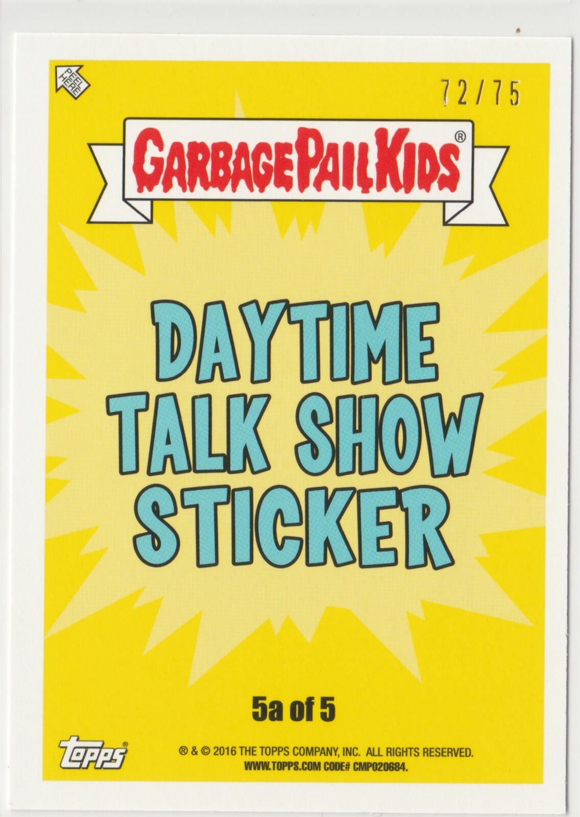SP 72/75 Red Bloody Nose Parallel Odd Oz #5a Garbage Pail Kids GPK 2016 Prime Slime Trashy TV Daytime Talk Show Sticker subset Dr. Mehmet Oz presumptive nominee for Administrator of the Centers for Medicare and Medicaid Services Donald Trump Administration trading card sticker American Pop Cult OverOurHeadz overourheads