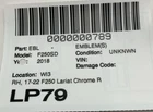 HK Auto Salvage HK Auto Salvage Montebello, CA Business Hours (PST/PDT) Mon - Fri 8am - 5pm Saturday 8am - 2pm Closed Sat & Sun Emblem(s) Year: 18 Model: FORD F250 SD PICKUP Side: Type: Used Category: Condition: Unknwn VIN: Vehicle Stock #: LP79 Part Stock #: 0000000789 Vehicle Info: Additional notes: Rh, 17-22 F250 Lariat Chrome Right Passenger Side Fender Emblem Trim Oem Interchange: Also fits: Search for more parts from this donor vehicle Search for more parts for FORD F250 SD PICKUP Airbag Notification If the item above is an airbag, I certify this airbag is not subject to recall and will be shipped in accordance with hazmat shipping requirements . Payment We accept credit cards through eBay Managed Payments only Sales tax collected by eBay where applicable COD available for orders placed for delivery to local businesses; please contact us prior to purchase to arrange Pay on pickup available for orders placed for local pickup Shipping We ship by FedEx, UPS, and USPS. Most items ship within 24 hours of payment; items paid for on the weekend or holidays ship on the following business day. Any free shipping we offer is for the continental United States only. If you are from Hawaii, Alaska, or a Territory of the United States, please request a shipping total before bidding and we will do our best to keep the cost low. Local delivery and local pickup options are also available. Warranty & Returns 30-day standard warranty on all general parts 90-day standard warranty on engines and transmissions Please verify fitment independently prior to purchase, as the information in the "compatibility" section above is generated by eBay Motors and not from us. If you have questions or concerns about fitment, please contact us prior to purchase. Contact Us If you have any questions regarding an eBay item, please CONTACT US via eBay messaging before you make the purchase. Please verify fitment independently prior to purchase, as the information in the "compatibility" section above is generated by eBay Motors and not from us. If you have questions or concerns about fitment, please contact us prior to purchase. After you have received your product in satisfactory condition, please leave us positive feedback. If there is a problem with your purchase, do not leave neutral or negative feedback: CONTACT US so that we can help you to resolve your issue to your satisfaction. Powered by Checkmate