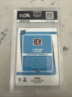 This 2021 Panini Donruss sports trading card features Ja'Marr Chase, a rookie player from the Cincinnati Bengals of the National Football League. The card is a premium gold holo parallel variety with a unique press proof design. It has been professionally graded by the Professional Sports Authenticator (PSA) with a perfect score of 10. The card is an original and licensed product manufactured in the United States by Panini. It is a standard size trading card suitable for any collection. The card number is 262 and it belongs to the 2021 season. This item is a must-have for any football fan or collector.