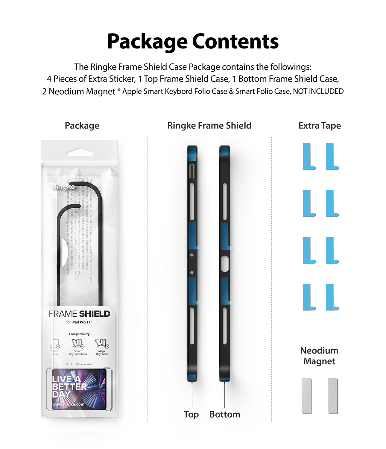 Full Cover Protection! Ringke Frame Shield for the iPad Pro 11\" (2020) Video will open in a new window Using the eBay App? Paste link into a browser window: [isdntekvideo] Installation Guide! Ringke Frame Shield for iPad Pro 11\" (2020) Video will open in a new window Using the eBay App? Paste link into a browser window: [isdntekvideo] Home Samsung Apple Other Devices Accessories Ringke [Frame Shield] Bumper for Apple iPad Pro 11" (4th/3rd - 2022/2021) Key Features Please make sure to choose the correct device! - Make sure the "Color" box is set to [No selection]. This will allow you to choose your phone in the "Device" box! Experience full coverage & protection with Ringke Frame Shield for the perfect fit with authentic Apple Smart Folio or Apple Smart Keyboard Folio. Durable polycarbonate is coated to match the iPad color while adding minimal bulk and weight. Easy stick-on installation! Powerful double-sided tapes prevent bumpers from scratching the device. Apple Smart Folio or Apple Smart Keyboard Folio not included with purchase. Ringke Bezel Styling For Apple Watch [ CLASSIC Series ] Apple Watch 6 / 5 / 4 / SE [40mm, 44mm] Apple Watch 3 / 2 / 1 [38mm, 42mm] [ STYLISH Series ] Apple Watch 6 / 5 / 4 / SE [40mm, 44mm] Apple Watch 3 / 2 / 1 [38mm, 42mm] [ TRENDY Series ] Apple Watch 6 / 5 / 4 / SE [40mm, 44mm] Apple Watch 3 / 2 / 1 [38mm, 42mm] Mount Holder Accessory Gear Car Mount Air Vent Car Mount [2 in 1] Dashboard Car Mount [2 in 1] CD Slot Car Mount [2 in 1] Power Clip Wing Air Vent Car Mount Spider Grip Bike Mount RealX2 Car Charger Dual QC 3.0 Ringke Metal Plate Metal Plate [Animal Edition] Super Folding Stand Accessory Magnetic Flip Card Holder Band Flip Card Holder [Saffiano Edition] Slot Card Holder Multi Card Holder Ring Slot Card Holder Shoulder & Hand Strap Ringke [Prism Ring] Wireless Charger Fast 9V [MFi Certified] Lanyard Wrist Strap Lanyard Finger Strap Cables Smart Fish USB Type C Cable Smart Fish Lightning Cable USB C to Type C Cable Adhesive Cable Organizer 2-Way Cross Lightning to Type C Adapter iPad Accessories iPad Pro 12.9 / 10.5 / 9.7 inch [Smart Cover with Pencil Holder] iPad Pro 10.5 / 9.7 inch [Smart Folio Design Leather Cover] iPad Pro 10.5 inch [Smart Slim Cover] Pen Holder Pen Sleeve Super Folding Stand Payment The only form of payment accepted is Paypal. Please use eBay checkout. Ebay checkout will automatically combine multiple items selected at your final checkout. **Please be sure to select the proper shipping address during the check-out. Immediate payment required after checkout. Shipping Free Domestic Shipping USPS First Class Package. Internaltional Shipping Standard International: 10-14 Business days varies by destination. Orders are shipped Via UPS Mail Innovations (www.ups.com) Packages are updated with tracking numbers with 7 business days if applicable **Shipments to certain countries are only traceable within the US. **Transit may take longer if the parcel is delayed due to carrier mishandling, customs delay, or other circumstances beyond our control. ***Ringke cannot claim responsibility for customs fee. The buyer will be accountable for any incurred Customs and Duty costs. International Orders must include a correct, working phone number. Packages lost due to illegitimate phone numbers are the responsibility of the buyer and can be subject to cancellations. Please fill the shipping address and your name in English. Packages lost due to illegitimate shipping addresses are the responsibility of the buyer and can be subject to cancellations. We strongly suggest that you check both your billing address and shipping address to ensure accuracy. From time to time, customers may incorrectly fill out these fields and submit orders. Official Ringke Store will only ship the products to the address that is indicated on the order. **Orders can not be altered or cancelled after being shipped. Return Policy Only items purchased directly from our Ringke Official eBay store (ringke_store) will be eligible for return. Items with all packaging and contents must be returned within 30 days. All returned products should be in the original packaging with no missing contents to receive a full refund Partial refund may be applied on any returned products that are not in original packaging or are missing contents any any opened packages. If you made a purchase and a larger discount was offered after your purchase, we cannot apply the larger discount to a previous order. Over 30 million people are already using our Ringke products!