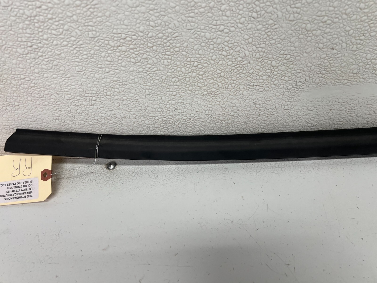 ELITE AUTO PART 2020-2022 HYUNDAI KONA REAR RIGHT PASSENGER SIDE DOOR WINDOW BELT MOLDING , GOOD USED CONDITION. LOT3509 # 113 part #OEM Look through pictures caref ully and make sure this is exactly the part you are looking for. What yo u see is what you will receive. DONOR CAR:--------- 2022 HYUNDAI KONA VIN#----------------------------- KM8K5CA30NU788097 ENGINE:------------------------- 1.6L 4 COLOR:-------------------------- RED Y2R TRANSMISSION:------------ AUTOMATIC AWD MILES:------------------14K MILES