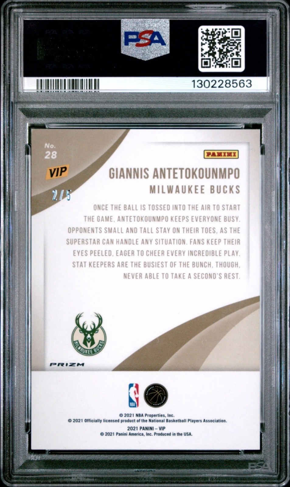 2022 PANINI NATIONAL VIP BLACK #28 GIANNIS ANTETOKOUNMPO 2/5 PSA 10. Condition is Graded. Shipped with USPS Ground Advantage.