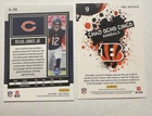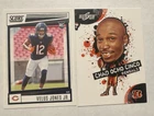 This 2022 Score sports trading card features Velus Jones Jr. of the Cincinnati Bengals and Chicago Bears. The card is part of the base set and is a rookie card. It has a card number of 395 and is from the 2022 season. The card is in black and white and is ungraded. The card is near mint or better and is perfect for any National Football League (NFL) fan. It is manufactured by Panini and does not have an autograph. This trading card is a must-have for any sports trading card collector. Get your hands on this rare card now! A40