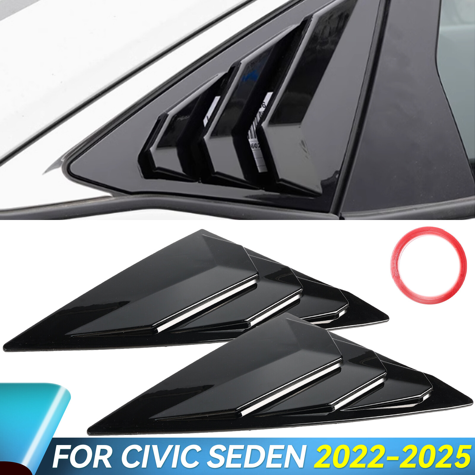 These gloss black quarter panel louvers are a sleek upgrade for any 2022-25 Honda Civic Sedan! The ABS material feels durable, and the glossy finish adds a premium touch. Installation was simple, and they fit perfectly—no gaps or alignment issues. They not only enhance the car’s sporty look but also protect the rear side windows from scratches. Definitely worth it for anyone wanting to customize their Civic without breaking the bank. Love the aggressive yet clean aesthetic they bring!