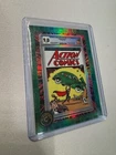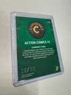 This is a rare (#8 of 99) Cardsmiths Currency Emerald Gemstone Refractor Card from the Series 2 set, Card #39 titled "Action Comics #1". Card art by Mariano Nicieza. This card was taken directly from the pack and placed in a penny sleeve and top loader upon opening, so it is in mint/near mint condition for the collectors out there! Shipping & Packaging: Card in penny sleeve and top loader will be packed carefully in a bubble mailer. It will be secured between 2 pieces of cardboard and placed inside the bubble mailer for extra protection during transit. *** NOTE *** Orders over $250 USD will be shipped in a USPS Priority Mail small flat rate box for extra protection during shipping. Can combine shipping if buying multiple cards. About Cardsmiths Currency Cards: The Cardsmiths Currency series takes collectors on a journey from the earliest days of civilization where mankind first bought, sold, and bartered for basic goods required for survival, to the present day, where technology, digital banking, and crypto power the world of commerce. Cards in this set range from persons of influence, memes, artifacts, and forms of money that have played an important role in development of civilization and the economy of today.