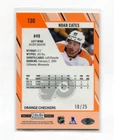 This 2023-24 O-Pee-Chee Platinum trading card features Noah Cates from the Philadelphia Flyers. The card is part of the Orange Checkers insert set and is serial numbered out of 25. It is a short print card with a parallel/variety of the same design. The card is perfect for collectors of hockey and ice hockey sports trading cards. The card is manufactured by Upper Deck and is a single card from the 2022-23 season of the National Hockey League (NHL). The card is not autographed and is a great addition to any collection. Get your hands on this unique card today!