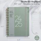 Tailored for 2024 - 2025: This 12-month planner for 2024 - 2025 (July 2024 - June 2025) features a year-at-a-glance, monthly overviews with previous and next month previews, and comprehensive weekly/daily sections for detailed planning. Embrace Premium Quality: Experience smudge-free writing on high-quality, non-bleed paper. The robust black hardcover 2024 - 2025 planner spiral bound not only exudes elegance but also promises lasting durability, combined with a user-friendly twin-ring spiral binding. Efficient Design for Optimal Planning: Enjoy a 2024-2025 yearly calendar, personal details section, contact pages, and plentiful lined spaces for notes within a generous 184 pages. Each page is crafted to help you achieve your goals and organize your life efficiently. Convenient Add-ons: Secure your plans with an elastic closure, and swiftly resume your organization with the included bookmark. Every element is meticulously added to enhance your planning journey. Quality and Functionality: Its 8.5" x 6.4" size is ideal for daily use. Whether for personal, school, or business planning, this versatile monthly planner 2024 - 2025 is tailored for all your scheduling demands. Make the most of every day, every week, and every month with a planner that understands your needs.