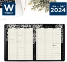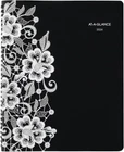 YEAR ROUND PLANNING – Large planner covers 13 months from January 2024 - January 2025. Keep track of important deadlines, special events and more with clear organization and unique style. GUARANTEED TO LAST ALL YEAR – ACCO Brands will replace any defective AT-A-GLANCE planner that is returned within one year from the date of purchase. This guarantee does not cover damage due to misuse or abuse. LACEY DESIGN – Add a touch of sophisticated style to your daily routine. Features a lace overlay with a cream floral pattern against a black background. Durable faux leather cover is made to last and twin wire binding prevents snags & secures pages. INK BLEED RESISTANCE – Plan your schedule without fear of distracting ink bleeding. Our improved, high-quality paper is designed for superior ink bleed resistance, which keeps plans neat and legible. WEEKLY OVERVIEW – Weekly two page spread has ruled columns for each day with hourly appointments from 7:00 a.m. - 8:00 p.m. Monday - Friday. Weekends are untimed. 8-1/2" x 11" page size. TABBED MONTHS – Each monthly two page spread has ruled daily blocks, notes space, and past/future month calendar references. Months are tabbed for easy navigation. SPECIAL FEATURES – Expand your organizational skills with special pages. They include a holiday listing, 3 year reference calendar, event calendar, future planning, contacts and notes. Double-sided poly pocket stores loose sheets. AT-A-GLANCE Lacey Weekly Monthly Appointment Book covers 13 months from January 2024 - January 2025. Keep track of important deadlines, special events, and more in style. Add a touch of sophisticated style to your daily routine. Planner features a lace overlay with a cream floral pattern against a black background. Plan your schedule without fear of distracting ink bleeding. Our improved, high-quality paper is designed for superior ink bleed resistance, which keeps plans neat and legible. Weekly two page spread has ruled columns for each day with hourly appointments from 7:00 a.m. - 8:00 p.m. Monday - Friday. Weekends are untimed. 8-1/2" x 11" page size. Tabbed monthly two page spread has ruled daily blocks, notes space and past/future month calendar references. Special pages include a holiday listing, 3 year reference calendar, event calendar, future planning, contacts and notes. Double-sided pocket stores loose sheets. Durable faux leather cover is made to last and stands up to wear and tear. Twin wire binding prevents snags and secures pages. *ACCO Brands will replace any AT-A-GLANCE planner that is returned within one year from the date of purchase. This guarantee does not cover damage due to misuse or abuse. Contact ACCO Brands Consumer Affairs for instructions.