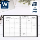 Menu Other Items Feedbacks About Us Contact Us Add To Favorites 2024 Weekly Planner, Quarter-Hourly Appointment Book, 7" X 8-3/4", Medium, Telephone/Address Pages, Black (709510524) YEAR ROUND PLANNING – Medium planner covers 13 months from January 2024 – January 2025. Keep track of important deadlines, special events and more with clear organization. GUARANTEED TO LAST ALL YEAR – ACCO Brands will replace any defective AT-A-GLANCE planner that is returned within one year from the date of purchase. This guarantee does not cover damage due to misuse or abuse. INK BLEED RESISTANCE – Plan your schedule without fear of distracting ink bleeding. Our improved, high-quality paper is designed for superior ink bleed resistance, which keeps plans neat and legible. WEEKLY OVERVIEW – Each day Monday-Saturday has a ruled column with 15-minute appointment times, while Sunday are condensed. Each page measures 7" x 8 3/4", with one week per two-page spread. PROFESSIONAL DESIGN – Take charge of your schedule with classic style. Planner has a black faux leather cover and twin wire binding to help keep pages secure for prolonged use. SPECIAL FEATURES – Expand your organizational skills with special pages. Includes a personal information page, 3 year reference calendar, 4 notes pages and a double-sided pocket. Guaranteed to last all year.* Confidently face every deadline, special events and more. The AT-A-GLANCE Weekly Planner covers 13 months from January 2024 - January 2025. Plan your schedule without fear of distracting ink bleeding. Our improved, high-quality paper is designed for superior ink bleed resistance, which keeps plans neat and legible. Each day Monday-Saturday has a ruled column with 15-minute appointment times, while Sunday are condensed. Each page measures 7" x 8-3/4", with one week per two-page spread. Take charge of your schedule with classic style. Planner has a black faux leather cover and twin wire binding. Expand your organizational skills with special pages. Includes a personal information page, 3 year reference calendar, 4 notes pages and a double-sided pocket. *ACCO Brands will replace any AT-A-GLANCE planner that is returned within one year from the date of purchase. This guarantee does not cover damage due to misuse or abuse. Contact ACCO Brands Consumer Affairs for instructions. Item Specification Style 2024 Old Edition Material Type Faux Leather Year 2024 Format Organizer, Notebook Material Faux Leather Pattern Name Weekly Ruling Type Ruled - Quarter-Hourly Additional Features Pockets Paper Size Letter Calendar Type Weekly Item Weight 0.63 Pounds Target Audience Teacher, Adult, Student, Teen Item Dimensions L x W 9"L x 7.5"W Sheet Size Letter Color Black Cover Material Faux Leather Binding Spiral-bound Global Trade Identification Number 00038576997363 Recommended Uses For Product scheduling, time management, organization Model Year 2024 SHIPPING FREE FAST SHIPPING FREE SHIPPING We are always working hard to ensure your package arrives as soon as possible. Please understand that some factors like weather, high postal traffic, and the performance of shipping companies are outside of our control. We offer free shipping to the lower 48 states. We do not accept P.O. Boxes. Please provide a physical address. If you have a problem or question regarding your transaction please contact us immediately. We will work with you to resolve any problem you may have. Thank you