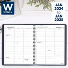 Menu Other Items Feedbacks About Us Contact Us Add To Favorites 2024 Weekly Planner, Quarter-Hourly Appointment Book, 8-1/4" X 11", Large, Navy (709502024) YEAR ROUND PLANNING – Large planner covers 13 months from January 2024 – January 2025. Keep track of important deadlines, special events and more with clear organization. GUARANTEED TO LAST ALL YEAR – ACCO Brands will replace any defective AT-A-GLANCE planner that is returned within one year from the date of purchase. This guarantee does not cover damage due to misuse or abuse. INK BLEED RESISTANCE – Plan your schedule without fear of distracting ink bleeding. Our improved, high-quality paper is designed for superior ink bleed resistance, which keeps plans neat and legible. WEEKLY OVERVIEW – Each day Monday-Saturday has a ruled column with 15-minute appointment times, while Sunday are condensed. Each page measures 8-1/4" x 11", with one week per two-page spread. PROFESSIONAL DESIGN – Take charge of your schedule with classic style. Planner has a Navy faux leather cover and twin wire binding to help keep pages secure for prolonged use. SPECIAL FEATURES – Expand your organizational skills with special pages. Includes a personal information page, 3 year reference calendar, contacts 3 notes pages and a double-sided pocket. Guaranteed to last all year. Confidently face every deadline, special events and more with clear organization and professional style. The AT-A-GLANCE Weekly Planner covers 13 months, January 2024 - January 2025. Plan your schedule without fear of distracting ink bleeding. Our improved, high-quality paper is designed for superior ink bleed resistance, which keeps plans neat and legible. Each day Monday-Saturday has a ruled column with 15-minute appointment times, while Sunday are condensed. Each page measures 8-1/4" x 11", with one week per two-page spread. Take charge of your schedule with classic style. Planner has a Navy faux leather cover and twin wire binding. Expand your organizational skills with special pages. Includes a personal information page, 3 year reference calendar, contacts 3 notes pages and a double-sided pocket. ACCO Brands will replace any AT-A-GLANCE planner that is returned within one year from the date of purchase. This guarantee does not cover damage due to misuse or abuse. Contact ACCO Brands Consumer Affairs for instructions. Item Specification Item model number 709502024 Item Weight 15.3 ounces Style 2024 Old Edition Material Faux Leather Number of Items 1 Format Notebook, Organizer Color Navy Binding Spiral-bound Product Dimensions 0.56 x 8.88 x 11.38 inches Calendar Type Weekly Material Type Faux Leather Sheet Size Letter Manufacturer Part Number 709502024 Ink Color Black Ruling Ruled with 15-minute appointment times and a single vertical line for daily division Year 2024 Size Large Target Audience Teacher, Adult, Student, Teen Cover Material Faux Leather SHIPPING FREE FAST SHIPPING FREE SHIPPING We are always working hard to ensure your package arrives as soon as possible. Please understand that some factors like weather, high postal traffic, and the performance of shipping companies are outside of our control. We offer free shipping to the lower 48 states. We do not accept P.O. Boxes. Please provide a physical address. If you have a problem or question regarding your transaction please contact us immediately. We will work with you to resolve any problem you may have. Thank you