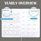 đăStandard Planneră: January 2024 - June 2025, with 18-month weekly/monthly/daily plan, holiday markers, to help you manage your life efficiently and perfectly achieve your goals. đăDIY Sticky Index Tabsă: Diy stickers can be made to look like you want, and let you quickly remember your records, Draw attention to critical items, index, file and get organized and more productive. đăEco-Friendly Artificial Leatheră: The cover is more soft and durable, with excellent texture. Even if used for a long time, the leather material will not be damaged. đăThickened Paperă: Use A5 thickened white paper without adding bleach to protect your eyesight and prevent ink from bleed the paper when you write. đăJan.2024- Jun.2025 PlannerăThe size is (5.7'' X 8.3''),comfortable to carry and use. It is perfect to use at work, school or home. Just take this ideal organizer and start planning your future life in advance!