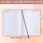 Menu Other Items Feedbacks About Us Contact Us Add To Favorites 2024-2025 Planner - Weekly Planner with Monthly Pages, 5.6" X 8.2", Vegan Leather Hardcover, Elastic Band and Pen Holder, Rose Planner Overview - This 2024-2025 planner 6.5 x 8.2 spans from July 2024 to June 2025, offering a full year of well-organized planning. Its calendar sections feature 12 months of monthly and weekly pages, making it ideal for year-round planning. The durable, eco-friendly, soft-touch vegan leather cover adds an elegant touch to your daily life Monthly Management - Each monthly spread includes an overview of the month, highlighting holidays, as well as previous and next month calendars. You'll also find a dedicated notes section with ample space for jotting down important details Guide Each Week - The weekly planner provides generous space for documenting your daily schedule, appointments, and activities. With a clear and organized weekly view, you can stay on top of your commitments effortlessly Stylish Design - Featuring a sleek vegan leather hard cover with matching closure band and pen holder, this planner notebook combines durability with environmental consciousness. Its simple and elegant design makes it the perfect choice for keeping your life organized Perfect For - This day planner offers flexibility to track goals, tasks, appointments, projects, habits, and more. It's an ideal tool for planners, organizers, academic agendas for school, work, or home use. Plus, it makes a thoughtful gift for anyone looking to plan, create, and schedule their daily life This year-long planner offers exceptional organization from July 2024 to June 2025, featuring monthly and weekly pages. Its durable eco-friendly faux leather cover adds elegance to your daily life. It's perfect for tracking goals, appointments, projects, and makes a thoughtful gift. Item Specification Sheet Size 5.6 x 8.2 inches Calendar Type Weekly and Monthly Format Notebook, Organizer Paper Size 5.6 x 8.2 inches Color Rose Material Type Faux Leather Cover Material Faux Leather Material Faux Leather Binding Unknown Binding Target Audience Adult, Student Recommended Uses For Product tracking goals, appointments, projects, academic agendas for school, work, or home use, and gifting Ruling Type simple ruled lines Additional Features Elastic Closure Special Feature Elastic Closure Item Dimensions L x W 8.2"L x 5.6"W Size 5.6" x 8.2" SHIPPING FREE FAST SHIPPING FREE SHIPPING We are always working hard to ensure your package arrives as soon as possible. Please understand that some factors like weather, high postal traffic, and the performance of shipping companies are outside of our control. We offer free shipping to the lower 48 states. We do not accept P.O. Boxes. Please provide a physical address. If you have a problem or question regarding your transaction please contact us immediately. We will work with you to resolve any problem you may have. Thank you