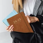【Professional Content Design】This 2024-2025 planner weekly and monthly is so well organized, its layout corresponds perfectly to all your daily needs. it comes with the whole month overview, quick reference information, date countdown, yearly goals, holiday reminder, contacts and notes. The inner-pocket inside the back cover that is perfect for keeping loose papers, such as holding receipts, shopping lists and business cards. 【Quality Paper and Well-made】This weekly calendar 2024-2025 planner is sturdy with premium thick pages, and has a great quality to it, the pens don't bleed to the back of the page. Double helical coil binding can be turned 360 degrees, The same color elastic closure design protects the inner pages, simple and practical. Soft and smooth skin feeling leather surface makes this agenda 2024-2025 daily weekly monthly planner yearly agenda more distinctive and premium texture. 【Enough Space】The 2024-2025 weekly planner's calendar part is roomy, it gives you a month at a glance with enough room to write in important dates. The week is shown using two pages, with each day having enough room to put appointment times, addresses, to-do lists or meeting notes. 【2024-2025 Academic Planner】Yearly calendar book planner from Jul 2024 - Jun 2025, featuring 12 months of monthly and weekly pages for a simple future planning, helps guide you to grow in 2024-2025. Moreover, durable coated tabbed dividers are long lasting and it can make accessing information a breeze. 【Easy to Carry】The 2024-2025 monthly planner also can be used as a school planner, teacher planner, student planner, academic planner, college planner, 6.4" x 8.5", the perfect size for your handbag or briefcase.