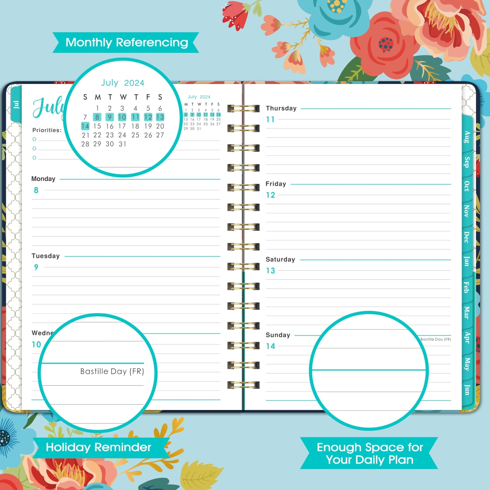 Planner 2024-2025 - Weekly Planner 2024-2025 from JUL 2024 to JUN 2025, Weekly Monthly Planner 2024-2025, 6" x 8.3", 2024-2025 Planner with Pocket ✓ Free 60 Day Returns ✓ Free Express Shipping Description: Features: YEARLY OVERVIEW - 2024-2025 Weekly monthly planner covers 12 months, starts from July 2024, ends in June 2025. Planner 2024-2025 features full monthly view pages for each month. Separate pages with full weekly view for more detailed planning WEEKLY PAGES - Each weekly page offers ample lined writing space for planning your schedules. Checking circles and lined writing space for priorities help to track your major appointments and plans. MONTHLY PAGES - Each monthly page contains a monthly overview with blank daily blocks in 1.2 in x 1.3 in, previous and next month reference calendar for long-term planning, and a note section for priorities, major holidays are highlighted for better life organization. PREMIUM THICKER PAPERS & TWIN-WIRE BINDING - The weekly monthly planner 2024-2025 with premium quality white paper for clean writing and reducing ink through. Durable hardcover, the gorgeous pattern on cover makes the 2024-2025 planner more individualized. Sturdy golden twin-wire binding allows turning pages smoothly and laying flat. FEATURED ORGANIZATION - 2024-2025 Yearly Overview/2024-2026 Holidays List/1 Quick Reference Information Page/1 Contacts Page/Inner Pocket/Twin-wire Binding/Elastic Band/Hard Cover/12 Monthly Tabs. Product Details: Brand: Urneeds Color: Blue Cover Material: Paper Year: 2023 Format: Organizer Calendar Type: Weekly/Monthly Target Audience: Adult Sheet Size: A5 Material: Paper Pages: 128 Pages Manufacturer: Urneeds Brand: Urneeds Item Weight: 10.8 ounces Package Dimensions: 8.39 x 6.14 x 0.67 inches Color: Blue Cover Material: Paper Material Type: Paper Ruling: Ruled Sheet Size: A5 Manufacturer Part Number: GOLHLSCHZY24 Date First Available: June 15, 2022
