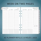 Menu Other Items Feedbacks About Us Contact Us Add To Favorites 2025 A5 Planner Inserts, Filofax A5 Compatible, Weekly and Monthly Appointment Book Pages, Tabbed, 6 Holes A5 planner inserts from Jan 2025 to Dec 2025, compatible with Filofax A5 Organisers 2-page monthly spreads with ruled daily blocks, calendar & notes section, laminated month tabs allow quick turning Weekly spread includes 53 weekly pages that have vertical half-hour appointments 7 am – 8 pm and notes sections, Monday – Friday Addtional Note-taking pages, Yearly Goals, Important Dates, Contact, 2024-2025 Calendar and Holidays Pages Extra 4-month spreads for early planning (Sep 2024 - Dec 2024, No Week Pages) Product Description 2025 full year dated planner refills with12 months of weekly and monthly pages, feature coated monthly tabs, daily 7am-8pm schedule weekly pages, yearly goals, important dates, contact and holidays pages. 2025 Weekly Planner Refills A5 Size Compatible with below brands and similar A5 6-ring binders: Filofax - A5 Organizer Carpe Diem - A5 Planner L V - Large Ring Agenda Kikki K - A5 Planner Planning Pages Overview Item Specification Sheet Size A5 Calendar Type Weekly and Monthly Format Notebook Paper Size A5 Model Year 2025 Cover Material Paper Material Paper Material Type Paper Style Weekly Target Audience Adult Binding Unknown Binding Year 2025 Recommended Uses For Product organizing and planning personal or professional schedules, appointments, and tasks Special Feature Tab Additional Features Tab SHIPPING FREE FAST SHIPPING FREE SHIPPING We are always working hard to ensure your package arrives as soon as possible. Please understand that some factors like weather, high postal traffic, and the performance of shipping companies are outside of our control. We offer free shipping to the lower 48 states. We do not accept P.O. Boxes. Please provide a physical address. If you have a problem or question regarding your transaction please contact us immediately. We will work with you to resolve any problem you may have. Thank you