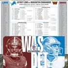 For sale, the Media Issued Game Flipcard and Team Media Program Notes for the Lions vs Commanders NFC Divisional Playoff Game. Saturday, January 18, 2025. Only given out to media and broadcast. What you get: 1. Game Media Flipcard - Lions vs Commanders (double-sided) 2. Plastic protector sheet