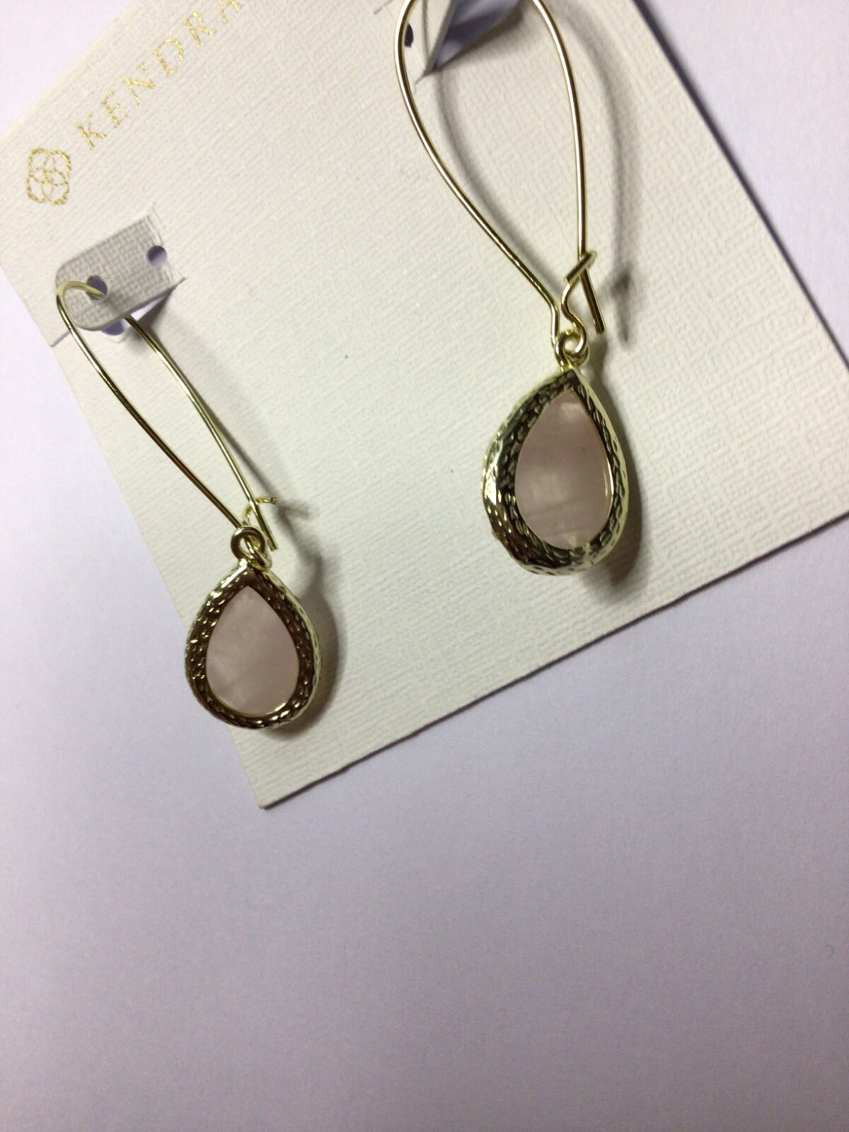 You are buying new without the tags Kendra Scott Dee rose/pink tear drop dangle earrings. Sorry I do not accept returns. All sales finale. Thanks for looking.