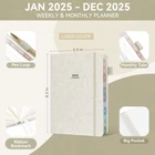 Comprehensive Year-Round Planning: Stay organized from Jan 2025 to Dec 2025 with clear monthly and weekly pages. Includes sections for personal information, yearly overview, goal setting, important dates, holidays, contacts, and notes for efficient time management. Monthly Goal Setting: Manage your monthly goals with dedicated pages for objectives, to-do lists, and reviews. Ample space for appointments, plans, and daily tasks keeps your monthly goals within reach. Weekly Productivity: Maximize your week with detailed weekly pages. Includes sections for focus areas, top-priority tasks, follow-ups, appointments, habit tracking, to-do lists, gratitude reflections, weekly reviews, and notes. Premium Quality Paper: Enjoy a superior writing experience on thick, bleed-resistant, off-white paper that is gentle on the eyes. Colorful tabs provide easy access to each month. Durable Design: The cover is crafted from high-quality linen fabric, known for its durability and luxurious texture. An inner expandable pocket for storing important documents and notes. Built to withstand daily use all year round.