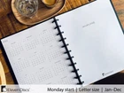 2025 Monthly Planner, Monday Start, Letter Size, 2 Styles (Separated, Booklet), Premium Discbound Notebook Paper for Circa, Arc, TUL (38 Sheets) Our Letter Monthly Planner Sheets are perfect for organizing each month for the whole year ahead. Included are pages for January through December. Each month is divided over a two-page spread so you have loads of space to plan your days. Weeks begin on Monday. Dates and major holidays are indicated in a square for each day. There is also a lined, column on the right for making notes. With your order, you will receive two options. With the first, you’ll find each month on a separate two-sheet spread. Each has a cover page on the front side and a page for notes on the back side. This option allows you to insert these pages in between other types of sheets in your notebook. The second is a booklet-style option where your months are back-to-back as you turn pages—there are no month cover pages or notes pages in between them. This gives you great flexibility for your planner or bullet journal. Examples of other pages you could insert are blank pages, weekly pages, or daily pages. Our Monthly Planner Sheets are punched for use with discbound notebooks and planners. What’s great about our Letter Monthly Planner Sheets is that you receive both styles with your order. Please note that these are monthly sheets only. You will not receive weekly or daily views. Planner/notebook not included. Eleven Discs is a boutique paper shop specializing in discbound notebook and planner designs. Our sheets are made of heavyweight 32lb bond (120 gsm) paper that is 60% thicker than standard paper. Quantity: 38 double sided sheets (76 pages). Paper: Archival quality, heavyweight 32lb bond (120 gsm), fountain pen friendly paper. Dimensions: US Letter size, 8½ × 11 inches. Compatibility: Fits Levenger Circa, Staples Arc, Office Depot TUL, Office by Martha Stewart, The Big Happy Planner, and other 11-disc letter-sized discbound systems. CALENDAR YEAR - 12 MONTHS - JANUARY TO DECEMBER: Our Letter Monthly Planner Sheets are perfect for organizing each month of the year. Included are pages for January through December. Each month is divided over a two-page spread so you have loads of space to plan your days. MONDAY START: Days of each month are spread across two pages, with 1⅞ × 1⅝ inch squares for each day of the week. Dates and major holidays are marked. There is also a lined, 1⅞ inch wide column for notes on the right. TWO STYLES INCLUDED: 1) Separated: Individual spreads for each month, for putting other sheets in between monthly views. 2) Booklet: All twelve months appear back-to-back, making a separate monthly section in your planner. HEAVYWEIGHT PAPER: 38 sheets of acid-free, heavyweight 32lb bond (120 gsm), fountain pen friendly discbound notebook paper. LETTER SIZE: 8½ × 11 inches. Fits Eleven Discs, Levenger Circa, Staples Arc, Office Depot TUL, the Big Happy Planner, Office by Martha Stewart, and other 11-disc Letter sized disc bound notebook systems. Shipping from the USA All of our products are shipped from the USA, ensuring quick delivery to your destination. Payment We offer the following payment methods: PayPal, credit card, bank transfer, and eBay's secure payment system. Free Shipping & Free Returns Shipping within the USA is FREE. Additionally, any return is absolutely free for you. Risk-Free Purchase You have the option to return an item within 30 days without any justification. We cover the return shipping costs! Fast Shipping We ship immediately upon receipt of payment. Generally, the package is delivered within 2-3 days in the USA. If it takes longer, we will contact you. Quality and Costs Made in Europe, USA, China No customs fees or additional charges Total satisfaction guarantee Invoice with declared VAT available upon request in .pdf format Feedback Your feedback is very important to us. After you pay for your purchase, you will automatically receive positive feedback from us.