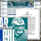For sale, the Media Issued Game Flipcard and Philadelphia Eagles Postgame Notes for the Eagles vs Rams NFC Divisional Playoff Game. Sunday, January 19, 2025. Only given out to media and broadcast. What you get: 1. Game Media Flipcard - Philadelphia Eagles vs Los Angeles Rams (double-sided) 2. Eagles Postgame Game Note 8.5x11" (3-page) 3. Plastic protector sheet