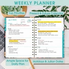 【 2025 PLANNER 】This daily weekly monthly planner 2025 hardcover (8.4"×6") features 12 months from JAN. 2025 to DEC. 2025 with weekly monthly planning pages, the planner offers other additional pages to help you well organized for the whole year and increase productivity. 【 MONTHLY PLANNING 】Each monthly pages with lined daily blocks lists major US holidays and Julian dates, the calendar planner 2025 also contains a notes section and past/previous calendar reference for your better past reviewing and future planning. 【WEEKLY PLANNING】Weekly view pages contain enough ruled space for your detailed daily planning, appointments, activities and so on. Major holidays listed, elapsed and remaining days noted. Priorities section is designed to focus your energy on your most important goals. 【PROFESSIONAL DESIGN 】Planner Front Cover | Yearly Overview | Contacts | Quick Reference Information | Monthly Inner Tabs | Holidays | Weekly and Monthly Pages | Twin-Wire Binding | Inner Pocket | Elastic Closure |3 Pages of Stickers. 【WORRY-FREE GUARANTEE】Focus on providing planner with excellent production and professional design. We provide 30-day quality assurance. If you're having ANY quality issues about your weekly monthly planner 2025, please contact us via amazon at first time.