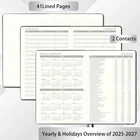 2025 Planner - 2025 Weekly Monthly Planner, January 2025 - December 2025, 5.85‘' x 8.5'' Calendar Planner 2025 with Leather Cover, Pen Holder, Elastic Closure, Ruled pages Yearly Overview - Weekly monthly planner 2025 with yearly overview of 2025 and 2026. This 2025 planner also features with 3 years holidays reference page and 2 contact pages which help you organize conveniently. 2025 Monthly Planner Pages - The 12 monthly planner 2025 contains a monthly overview with blank daily blocks. This 2025 weekly monthly planner has previous and next month reference calendar on each monthly page which for long-term planning and to do list help you set your goals. The 2025 planner has a note section for taking notes or today's summary. 2025 Weekly Planner Pages – This 2025 weekly planner with daily page which from Monday to Sunday. Each weekly daily section of the 2025 planner is ruled line for planning, You write down your notes on it. The holiday will appear in the upper right corner of the corresponding date. 2025 Planner Functional Design - Elastic Closure for the 2025 calendar planner for good keepping + 12 monthly printed tabs for quick reference + Round corner to keep the paper flat. 2024 Weekly Monthly Planner Feature Organization - Flexible Hard Cover+ Contact Pages + Yearly Overview of 2025 - 2026 + Holidays of 2025-2027 + ruled pages Yearly Overview - Weekly monthly planner 2025 with yearly overview of 2025 and 2026. This 2025 planner also features with 3 years holidays reference page and 2 contact pages which help you organize conveniently. 2025 Monthly Planner Pages - The 12 monthly planner 2025 contains a monthly overview with blank daily blocks. This 2025 weekly monthly planner has previous and next month reference calendar on each monthly page which for long-term planning and to do list help you set your goals. The 2025 planner has a note section for taking notes or today's summary. 2025 Weekly Planner Pages – This 2025 weekly planner with daily page which from Monday to Sunday. Each weekly daily section of the 2025 planner is ruled line for planning, You write down your notes on it. The holiday will appear in the upper right corner of the corresponding date. 2025 Planner Functional Design - Elastic Closure for the 2025 calendar planner for good keepping + 12 monthly printed tabs for quick reference + Round corner to keep the paper flat. 2024 Weekly Monthly Planner Feature Organization - Flexible Hard Cover+ Contact Pages + Yearly Overview of 2025 - 2026 + Holidays of 2025-2027 + ruled pages Shipping from the USA All of our products are shipped from the USA, ensuring quick delivery to your destination. Payment We offer the following payment methods: PayPal, credit card, bank transfer, and eBay's secure payment system. Free Shipping & Free Returns Shipping within the USA is FREE. Additionally, any return is absolutely free for you. Risk-Free Purchase You have the option to return an item within 30 days without any justification. We cover the return shipping costs! Fast Shipping We ship immediately upon receipt of payment. Generally, the package is delivered within 2-3 days in the USA. If it takes longer, we will contact you. Quality and Costs Made in Europe, USA, China No customs fees or additional charges Total satisfaction guarantee Invoice with declared VAT available upon request in .pdf format Feedback Your feedback is very important to us. After you pay for your purchase, you will automatically receive positive feedback from us.