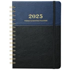 YEARLY OVERVIEW - 2025 planner with yearly overview of 2025 and 2026, also features with quick reference information page, holidays page and contact pages, which help you organize convenient. MONTHLY PAGES - The planner 2025 contains a monthly overview with 1.4 x 1.1 in blank daily blocks , previous, present and next month reference calendar for long-term planning, and a note section for taking notes or today's summary. WEEKLY PAGES – This agenda planner with weekly page which has enough space for planning and holiday will be reminded on the current day. FUNCTIONAL DESIGN - Strong twin-wire binding for the 2025 weekly monthly planner lay-flat 360°+ 12 monthly tabs for quick reference +The back inside pocket for holding some items + Elastic closure for keeping planner closed. FEATURED ORGANIZATION - Hardcover design + Water resistant cover + Quick Reference Information + Yearly Overview of 2025 + Holidays of 2025-2027 + Round corner design.
