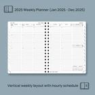2 PAGES PER WEEK:Lay flat week-to-view on 2 pages, this weekly planner (Jan 2025 - Dec 2025) presents spacious everyday planning with hourly schedules for your appointments, which makes your busy daily routines organized. VERTICAL HOURLY LAYOUT: The weekly layout includes ample space to write (from 7:00am to 8:00pm). A week is laid to view on 2 pages. Each monthly layout contains an overview of the month and a notes section. QUICK SEARCH FUNCTION: Flexible " TODAY " Ruler and Monthly tabs allow you to quickly browse and locate the current date. Besides; The Tear-Off Corners and Bookmark Ribbons are added to mark any wanted page of your choice. EXTRA FUNCTION PAGES: This 2025 weekly planner also contains "2025-2026 Yearly Overview" Page + "2025-2026 Holiday & Calendar" Page + Monthly Expenses Page+ Contact & Password Pages + 7 Dotted Notes Pages for jotting down your ideas, thoughts or any other happy things in detail. FSC THICK PAPER: The use of ecological 100GSM paper from sustainable forests makes it silky smooth to write on and ink resistant, bringing you the ultimate writing experience.