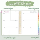 2025 Planner, Annecy Weekly & Monthly Planner 2025, Jan. 2025 – Dec. 2025, 6.4" x 8.5" Monthly Agenda Planner with Tabs, Waterproof Flexible Cover, Spiral Binding, Double-sided Pocket, Bookmark,Green PLANNER 2025 - From January 2025 to December 2025 with 12 months of monthly and weekly pages for easy year-round planning; 2025 weekly and monthly planner includes THREE additional monthly pages (October 2024 - December 2024); Annecy spiral bound 6.4" x 8.5" Planner is easy to use and carry away. MONTHLY OVERVIEW – 2025 monthly planner includes previous and next month reference calendars for a simple past reviewing and future planning; Notes section for important projects; Major holidays listed, elapsed and remaining days; Durable coated tabbed dividers that are tough and long-lasting, making it easy to find information. Gentle color background hues on the page make instant clarity! WEEKLY OVERVIEW - Two Page spread for each week, from Monday to Sunday offers generous blank writing space; 2025 daily weekly planner includes popular holidays and 3-month reference previews; allowing you to keep track of your appointments, reminders, ideas and to-do lists every day of the week. Vibrant fonts add a visually appealing touch! PREMIUM PAPER - 100GSM Paper Guaranteed Thicker Than Normal! Keeps your planner neat and attractive in your 6.4" x 8.5" sizes 2025 planner book; Water-resistant plastic cover and practical back pocket for added convenience; Sturdy 2025 agenda planner book withstands frequent transfers, ensuring long-lasting reliability and durability to the entire year. Value for money! MORE FEATURES - Annecy 2025 daily weekly and monthly planner includes Quick Reference | 25-26 Yearly Overview | Contacts | Special Dates | 25-26 Yearly Schedule | Monthly Section | Weekly Section | Note Pages | Holidays | Map | Double-sided Pockets. Keep you organize throughout the year and easy to use! PLANNER 2025 - From January 2025 to December 2025 with 12 months of monthly and weekly pages for easy year-round planning; 2025 weekly and monthly planner includes THREE additional monthly pages (October 2024 - December 2024); Annecy spiral bound 6.4" x 8.5" Planner is easy to use and carry away. MONTHLY OVERVIEW – 2025 monthly planner includes previous and next month reference calendars for a simple past reviewing and future planning; Notes section for important projects; Major holidays listed, elapsed and remaining days; Durable coated tabbed dividers that are tough and long-lasting, making it easy to find information. Gentle color background hues on the page make instant clarity! WEEKLY OVERVIEW - Two Page spread for each week, from Monday to Sunday offers generous blank writing space; 2025 daily weekly planner includes popular holidays and 3-month reference previews; allowing you to keep track of your appointments, reminders, ideas and to-do lists every day of the week. Vibrant fonts add a visually appealing touch! PREMIUM PAPER - 100GSM Paper Guaranteed Thicker Than Normal! Keeps your planner neat and attractive in your 6.4" x 8.5" sizes 2025 planner book; Water-resistant plastic cover and practical back pocket for added convenience; Sturdy 2025 agenda planner book withstands frequent transfers, ensuring long-lasting reliability and durability to the entire year. Value for money! MORE FEATURES - Annecy 2025 daily weekly and monthly planner includes Quick Reference | 25-26 Yearly Overview | Contacts | Special Dates | 25-26 Yearly Schedule | Monthly Section | Weekly Section | Note Pages | Holidays | Map | Double-sided Pockets. Keep you organize throughout the year and easy to use! Shipping from the USA All of our products are shipped from the USA, ensuring quick delivery to your destination. Payment We offer the following payment methods: PayPal, credit card, bank transfer, and eBay's secure payment system. Free Shipping & Free Returns Shipping within the USA is FREE. Additionally, any return is absolutely free for you. Risk-Free Purchase You have the option to return an item within 30 days without any justification. We cover the return shipping costs! Fast Shipping We ship immediately upon receipt of payment. Generally, the package is delivered within 2-3 days in the USA. If it takes longer, we will contact you. Quality and Costs Made in Europe, USA, China No customs fees or additional charges Total satisfaction guarantee Invoice with declared VAT available upon request in .pdf format Feedback Your feedback is very important to us. After you pay for your purchase, you will automatically receive positive feedback from us.