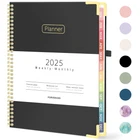 2025 Planner with Simple Layout: Come with 12 months (Jan 2025 - Dec 2025) of monthly and weekly pages, providing a fresh start for an entire year! This agenda planner features a simplified layout for ease of use, offering spacious writing space to plan your schedule freely. The elegant design with attention-grabbing colors, adds a touch of sophistication to any setting! Upgraded Quality: Unlike other flimsy planners, our calendar planner features a sturdy hard cover with metal corner guards to prevent pages from creases or wrinkles. Monthly tabs for simplify navigation are laminated to resist tears. Thick, no-bleed paper for easy writing. Monthly Calendar & Weekly Planner: Each monthly spread with large date box helps you easily mark appointments, agenda, important dates, bills due, etc. Weekly two-page spreads provide generous lined writing space for more detailed planning, helping you keep track of top priorities and daily tasks. Additional Planner Features: This calendar planner starts with Yearly Goals page for goal setting. It also includes reference calendars, contact page, important dates page and holiday lists to keep on top of your special dates. Bonus extra notes pages to jot down your thoughts. Organize Your Day & Keep Focus: How tricky it can be when a thousand things buzzing around your head! This planner journal is definitely a life saver, helping you stay focused on your tasks throughout the week. Use this notebook to simplify your life and organize your day for maximum efficiency. Measuring 8.5" x 11", perfect size to fit in your tote or backpack and take anywhere!