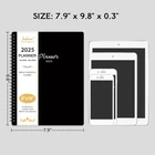 📚2025 Planner - This planner 2025 daily weekly and monthly covers 12 months from January 2025 - December 2025. And size of the planner 2025 is about 8" x 10". 📚Functional Details - 8" × 10" Planning Pages | Flexible Cover | Marked Monthly Tabs | Quick Reference Information | Yearly Overview | Holidays | Twin-wire Binding | Thick Paper. 📚Monthly Features - Planner 2025 have daily blocks every month, including Julian dates and holidays markings, and notes on the right side of the planner. The 2025 monthly planner have plenty of writing space so that you can record important things this month and write down your plans. 📚Weekly Features - Weekly spread include space to write your daily schedule, have plenty of space to detail appointments and keep track of all days clearly with the weekly view. 📚Stylish Design - Neat design of the weekly monthly planner 2025 suitable for offices, schools and meetings. Planner effectively realize the management and planning of daily tasks and long-term goals.
