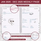 This compact 2025 monthly and weekly planner (January 2025 to December 2025) measuring 7" x 10", 2025 planner is a simple and elegant planner which could keep you organized everywhere you go. Simple page designs and plenty of room for all of your important information. 12 Month planner contains: yearly overview (calendar of 2025-2026) holidays 2 contact pages 12 month calendar sections 60 week sections 14 notes pages(lined) Each monthly spread contains an overview of the month and a notes section. 12 month calendar, 2 pages per month. Plenty of room for notes and details. Each monthly calendar is followed by 5 weekly pages, 2 pages per week. Weekly spread include ample space to write down your daily schedule, appointments, activities, week's focus, to do list/goal and keep track of all days clearly with the weekly view. This distinctive monthly & weekly planner features high quality 100gsm white paper for easy writing and reducing ink leakage, erase fraying and shade issues, providing clean writing space for your appointments, to-dos and reminders. This monthly and weekly planner responds well to fountain pen, gel pen, roller pen, ballpoint pen, highlighter, pencil and etc. Monthly calendar tabs allow easy access to each month’s plans. Sturdy and flexible covers to protect the inner pages well, thick paper for smooth writing, strong twin-wire binding, sturdy plastic pocket to store loose items, like tickets, cards, papers etc, all these details demonstrate high quality. This personal organizer features flexible structures that allow you to keep track of goals, tasks, appointments, project, works, habbits etc. Perfect for planner, organizer, academic agenda or note pad for school, work or home or makes a great gift. Plan, create and schedule your daily life with this gorgeous monthly & weekly planner now. PLANNER OVERVIEW - Planner 2025 runs from January 2025 to December 2025, featuring 12 months of monthly and weekly pages for easy planning. 7" x 10", comfortable to carry and use MONTHLY - Each monthly spread contains an overview of the month with holidays, previous & next month calendars and a notes section. Plenty of room for notes and details WEEKLY - Weekly spread include ample space to write down your daily schedule, detailed appointments and activities and keep track of all days clearly, great as a daily planner too TABS & POCKET - Each month is separated with laminated tabs, Inner pocket to store loose items like tickets, cards, papers etc SUPERIOR QUALITY - This 2025 planner with sturdy and flexible cover to protect the inner pages well. Thick paper to reduce ink leakage, erase fraying and shade issues. Strong metal and lay-flat twin-wire binding. Plan, create and schedule your daily life with this gorgeous weekly & monthly planner