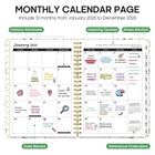 Year-Round Planning Made Easy: Our 2025 planner offers comprehensive coverage from January to December, equipping you for every month and week ahead. With 53 weeks included, you’ll have ample space to plan, set goals, and track your progress toward succes. Streamlined for Success: Enjoy a seamless planning experience with dedicated monthly and weekly calendar pages that facilitate scheduling, prioritizing, and reflection. Each month begins with an inspiring quote from a renowned figure to keep you motivated and focused. Thoughtful Features: The 2025 planner includes convenient details that enhance your planning journey. An elastic band secures it closed, monthly tabs allow for quick navigation, and a clear double-sided pocket provides extra storage for notes or reminders. Versatile for Every Lifestyle: Ideal for students, teachers, professionals, and homemakers, this planner meets the diverse needs of any busy individual. Manage school assignments, work projects, family events, and personal goals—all in one organized space. Inspire and Organize: Embrace the structure and encouragement of the 2025 Planner. With its functional design and practical features, it’s the perfect choice for anyone who values organization and efficiency. Make 2025 your most productive year yet!