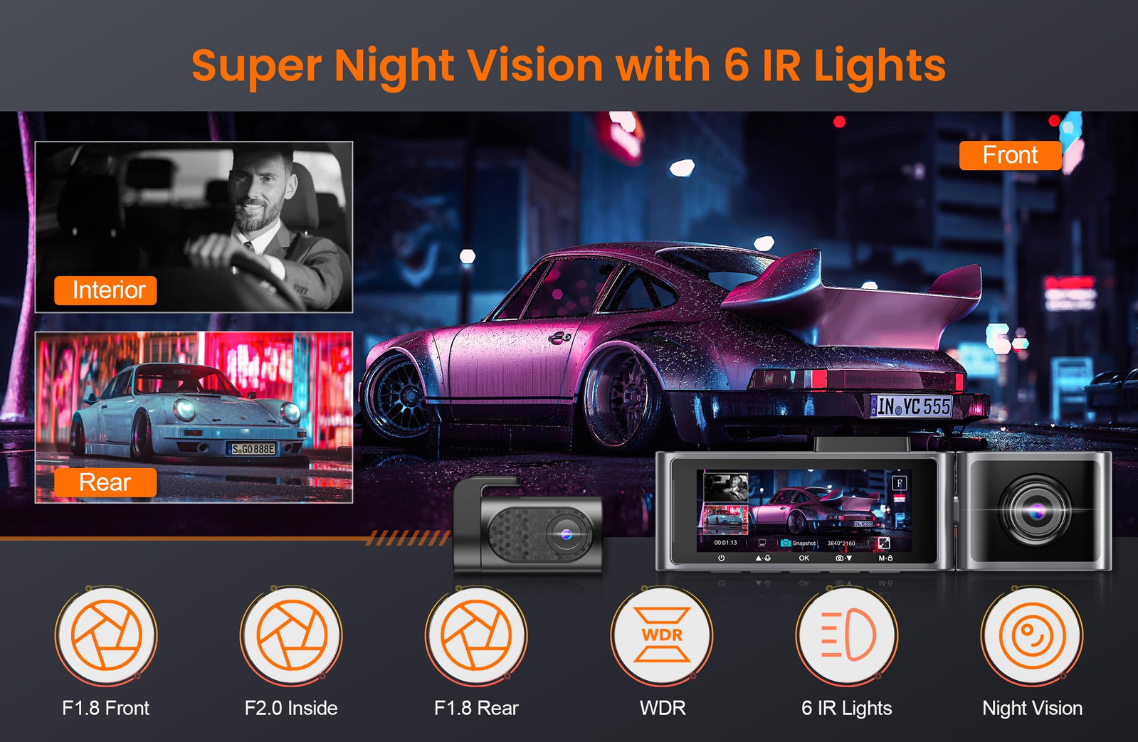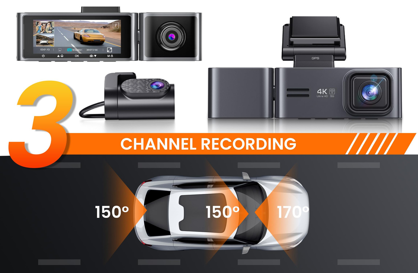 2025 UPGRADED REAL 4K RECORDING: Front cam resolution of 4K/2K/1080P, front+rear or cabin camera: 4K/2K/1080P+1080P. M571 Cam can be used as a dash cam 3ch, dual dash camera or single dashcam. Loop recording, 24/7 parking monitor, built-in GPS, G-Sensor, time-lapse video, emergency video lock, free 64GB card storage dash cam for Uber, SUV rideshare, Lyft, taxi, truck, vehicles. 2025 UPGRADED 4K+1080P RECORDING: 4K front and FHD 1080P interior/rear camera HD dash cam 3 way monitor your car simultaneously clearly. Car dash cam M571 ultra wide angle lens achieves 170° +150°+150° field of view, covering more than 3 lanes, achieving 360°comprehensive protection and monitoring without blind spots. 2025 UPGRADED SUPER NIGHT VISION: The upgraded F1.8/6 glass aperture lens and 6 hidden IR LED lights enable the M571 to record images of moving vehicles faster and more accurately. Camera M571 can automatically identify the intensity of the light source and auto-balance the exposure to capture clear video in extreme scenes such as rain, fog, and snow. HIGH-SPEED TRANSMISSION: Built-in 5.0G/2.4GHz dual-band WiFi, transfer speed increased by 4 times, and the WiFi signal range works best within 25ft. Use the "OMBAR" app to preview, play, download or share videos in real-time on iPhone and Android devices. Built-in GPS records your driving route and speed. RELIABLE WITNESS FOR ACCIDENT: Free 64GB SD card provided, supports SD card up to 256GB. G-sensor auto detects a collision auto-record and locks videos of the file to prevent an overwrite, as important evidence for insurance claims. 24/7 PARKING MODES: Dashcam M571 will auto-switch to parking mode while your car is parked. 3 ways dashboard camera provides 2 parking modes: the time-lapse parking mode and collision parking mode for different usage scenarios. USB C port hardwire kit (ASIN: B0BNTLSMJ3, sold separately) is required for the 7/24 Parking Monitor. EASY TO USE: Dashcam only takes 10-25 min from unboxing to installation. Strong magnetic mount and Type C port design, which is easier to plug and unplug. The rear inside camera supports flexible rotation. 3.18" Screen display without any reflection, even when traveling at high speeds, and allows you to easily access live video. The mini hidden dash cam is about 1/2 on the phone and 'disappears' behind the rear mirror without blocking the driver's view. WARRANTY & SUPPORT: Built-in supercapacitor, the service life is twice that of the lithium battery. Withstands extreme temperatures from -4°F/-20°C to 158°F/70°C. Dashcam offers a 3-year worry-free warranty. If you have any issues regarding dash cam, please contact us, the after-sales team is online 24 hours a day. NOTE: ▲Please format your Micro SD card in dash cam when use first. ▲Wi-Fi doesn't mean wireless, supportn't remote viewing live on your phone from home.▲GPS can't be used for navigation, it is only used to record the vehicle's driving trajectory, speed, latitude and longitude. ▲The preview mode supports 1080P, to view 4K recorded video, please download it first. ▲Do not plug or unplug the rear camera or interior camera during use.