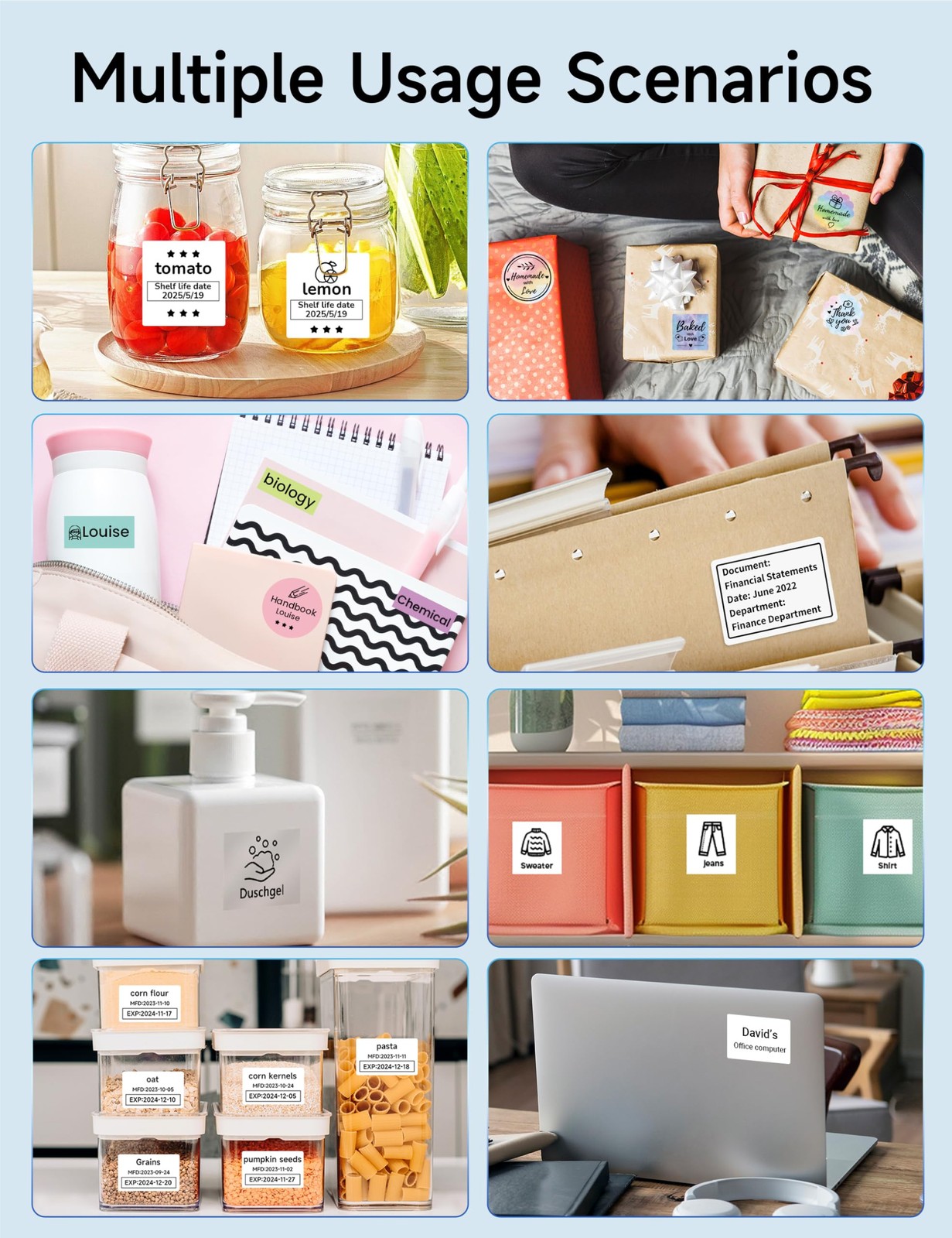2025 New Upgraded M250 Label Maker,the ideal basic small business and home printer. Thermal bluetooth label printer - never need the ink, toner, and ribbon again. M250 barcode label printer prints using thermal technology, meaning you only need to restock on labels, M250 label maker machine come with 100pcs 1.57"x1.18" label tapes. M250 Label Makers supports printing wider and more types of labels; such as barcode, jars, price, clothes, QR, icon, also can print address labels, ingredient labels, shipping labels. Save you a lot of time handwriting labels and improve efficiency. M250 barcode printer except to printing traditional black fonts, our R&d team is currently upgraded to print two-color fonts(black & Red), allow us to customize the font color and print labels completely & efficiently. 2025 Upgraded Version - M250 Label Maker: With an extended battery life of 2200mAh, the M250 portable label printer can print up to 5000 labels on a single charge. Enjoy a printing speed of 30-50mm per second. It features an automatic sleep mode that conserves energy by automatically shutting down after 5 minutes of inactivity, preventing unnecessary power waste Versatile Upgrade: The all-new 3-inch label maker from supports a wider printing width of 0.78"-3.14". Perfect for barcodes, QR codes, cables, addresses, names, mailing, jar labels, food labels, office, and home organization. Whether you're at home or running a small business, this compact sticker printer is the ultimate choice (Note: M250 Label Maker does not support 4" x 6" labels! ) Free Multifunctional App: The M250 label maker printer comes with the powerful "Print Master" app. Create various content like QR codes, text, OCR, images, voice recognition, and batch printing. Choose from over 1500 symbols, 200+ templates, 110+ fonts, and 20+ languages for limitless customization options Convenient and User-friendly Bluetooth Label Printer: With its integrated paper loading structure, installing labels has never been easier. Weighing only 390g, this portable label printer easily fits in your pocket, bag, or backpack. Experience the convenience of printing labels anytime, anywhere with the M250 thermal barcode label printer Highly Compatible: M250 mini sticker maker is compatible with multiple systems including Android, iOS, iPad & macOS, and Windows 7 or above. Connect your smartphone or iPad via Bluetooth using the "Print Master" app. For computer connection, simply download the driver and "Labelife" app, then connect using USB (refer to the software installation tutorial on the page for detailed instructions)