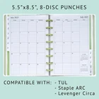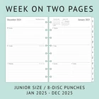 2025 Weekly & Monthly Planner Refill for 8-Discbound Planners, Two Pages Per Week, Junior Size, 5-1/2"x8-1/2" Refill your junior size 8 disc planners and keep organized with this 2022 weekly calendar refills that feature Tabs, Notes section, To-Do & Review pages. 8-disc punched planner refills compatible with Arc, Levenger, TUL junior size discbound planners 2025 year weekly pages run from January 2025 to December 2025 Weekly spread includes Week's Focus & 2-month calendar sections on the top and a Monday to Sunday format 2 page monthly spread with ruled daily blocks, calendar & notes section, laminated tabs to allow quick turning Additional pages: calendar & holidays, contacts, yearly goals and important dates pages, 3 monthly spread pages for early planning (Oct 2024 to Dec 2024, no weekly pages) Shipping from the USA All of our products are shipped from the USA, ensuring quick delivery to your destination. Payment We offer the following payment methods: PayPal, credit card, bank transfer, and eBay's secure payment system. Free Shipping & Free Returns Shipping within the USA is FREE. Additionally, any return is absolutely free for you. Risk-Free Purchase You have the option to return an item within 30 days without any justification. We cover the return shipping costs! Fast Shipping We ship immediately upon receipt of payment. Generally, the package is delivered within 2-3 days in the USA. If it takes longer, we will contact you. Quality and Costs Made in Europe, USA, China No customs fees or additional charges Total satisfaction guarantee Invoice with declared VAT available upon request in .pdf format Feedback Your feedback is very important to us. After you pay for your purchase, you will automatically receive positive feedback from us.