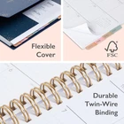 Plan your year in style with the classic aesthetic of this 2025 planner. This weekly and monthly planner will keep you organized everywhere you go. Simple page designs add a touch of sophistication and offer plenty of room for all of your important information. Designed with practicality and ease of use in mind, this agenda's monthly calendar tabs allow for easy access to each month’s plans while weekly views offer ample writing space for detailing each day. Thirty sheets of notepaper at the back of the planner offer additional space for you to jot down your thoughts, ideas and musings. A yearly overview calendar, a yearly goals layout and budget spreadsheet assist with long-term planning. A snap-in ruler/bookmark, double-sided paper pocket for loose leaf materials, listed holidays and a reference sheet with US States and Capitals add to the usefulness of this organizational tool. Quality flexible covers and metallic twin-wire binding provide reliable durability for daily use. Stay on track throughout the year with this portable 5.875” by 8.625” planner dated January 2025 - December 2025. Mix and match with other Classic Collection planning products from to organize your daily life. creates modern and sophisticated organizational planners and calendars to fit the scheduling needs of busy people - whether it’s for business professionals, college students, teachers, or anyone with appointments to make note of. Keep your life organized with our full line of products including desk pad calendars, wirebound tabbed weekly and monthly planners with contacts and notes pages to accommodate your scheduling needs, and laminated two-sided wall calendars, all in a variety of colors and patterns to suit your lifestyle and personality. January 2025 - December 2025 planner with 12 months of monthly and weekly pages for easy planning and scheduling; 6 bonus monthly pages (July 2024 - December 2024) are included Monthly pages contain previous and next month reference calendars for long-term planning, and a notes section for important projects; Major holidays listed, elapsed and remaining days noted Weekly view pages offer ample lined writing space for more detailed planning, allowing you to keep track of your appointments, reminders, ideas and to-do lists every day of the week This 5.875" x 8.625" planner has a generous, tabbed notes section that provides 60 pages of lined writing space, while a budget tracker helps you manage your finances The planner’s gold-tone, spiral bound spine, flexible, dark blue cover and colorful, durable monthly tabs ensure that this planning calendar can withstand the demands of your busy schedule
