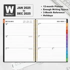 2025 Professional Planner - Cover from January 2025 to December 2025, Features 12 months of monthly and weekly pages, and also inclueds 3 extra monthly pages for October to December 2024 and 12-monthly tabs, with Lay-flat capability for all your planning and scheduling needs, and measures 8.5" x 11" Monthly View - Each date box provides ample writing space and includes the previous and next month's reference, ruled daily blocks with popular holidays, and Julian Dates for easy long-term project and appointment scheduling. Weekly View - 2-page weekly spread from Monday to Sunday provides generous lined writing space along with popular holidays and 3-month reference previews, allowing for easy appointment, note, and daily task management. Fight Ink-bleeding Thick Paper - Made with premium heavyweight paper to prevent ink bleed. The 8.5x11" size offers enough space for organization and scheduling. Sturdy notebooks withstand frequent transfers in and out of backpacks, briefcases, and cars. Additional Features - The weekly planner includes 2025-2027 calendars, year schedule for full year 2025, holiday lists, contact pages, notes pages, important dates, and US time zone map. Rainbow monthly tabs simplify navigation and add a stylish, playful element to the planner's aesthetic.