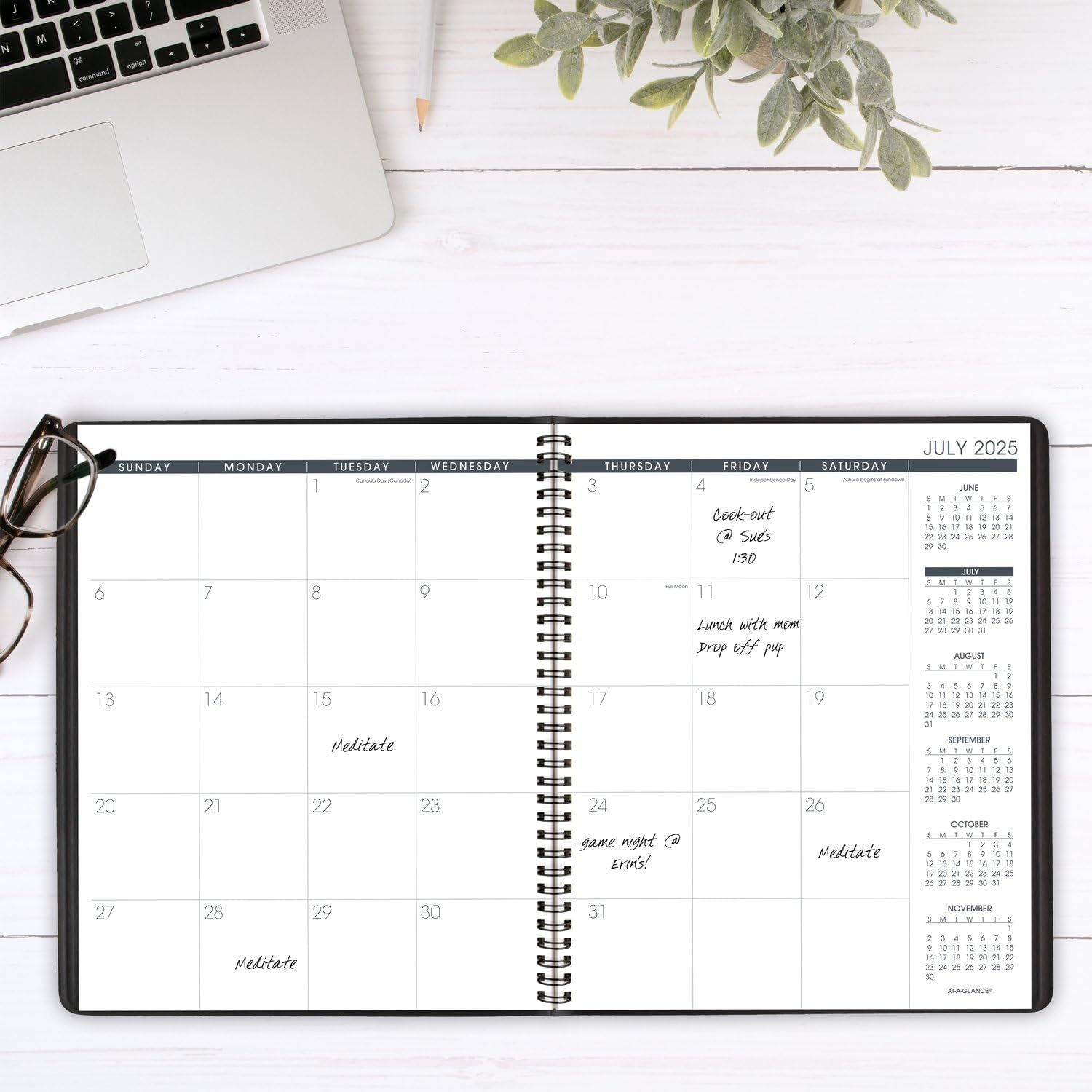 ACADEMIC PLANNING – Manage your schedule with this classic planner. Date range covers 18 months from July 2025 — December 2026 for academic year planning and beyond. GUARANTEED TO LAST ALL YEAR – ACCO Brands will replace any defective AT-A-GLANCE planner that is returned within one year from the date of purchase. This guarantee does not cover damage due to misuse or abuse. INK BLEED RESISTANCE – Plan your schedule without fear of distracting ink bleeding. Our high-quality paper is designed for ink bleed resistance, which keeps plans neat and legible. MONTHLY OVERVIEW – Monthly spreads feature unruled daily blocks, plus past, current and future month reference calendars for in depth planning. Pages measure 9" x 11". Daily blocks measure 2" x 2". ENHANCED ORGANIZATION – Special pages include a class schedule, future planning pages, a 3-year reference calendar, contacts and a spacious pocket for extra storage PROFESSIONAL DESIGN – Take charge of your schedule with classic style. Planner has a black, faux leather cover and twin wire binding to help keep pages secure. Plan to stay one step ahead of your deadlines and achieve your goals with the AT-A-GLANCE Academic Monthly Planner. Date range covers 18 months from July 2025 — December 2026 for academic year planning and beyond. Guaranteed to last all year.* Plan your schedule without fear of distracting ink bleeding. High-quality paper is designed for ink bleed resistance, which keeps plans neat and legible. Monthly spreads feature unruled daily blocks for open scheduling, plus past, current and future month reference calendars for in depth planning. 9" x 11" page size. Daily block size measures 2" x 2". Includes spacious pocket for extra storage. Special pages include a class schedule, future planning pages, a 3-year reference calendar and contacts pages. Take charge of your schedule with classic style. Planner has a black faux leather cover and twin wire binding to help prevent snags and secure pages. *ACCO Brands will replace any defective AT-A-GLANCE planner that is returned within one year from the date of purchase. This guarantee does not cover damage due to misuse or abuse.