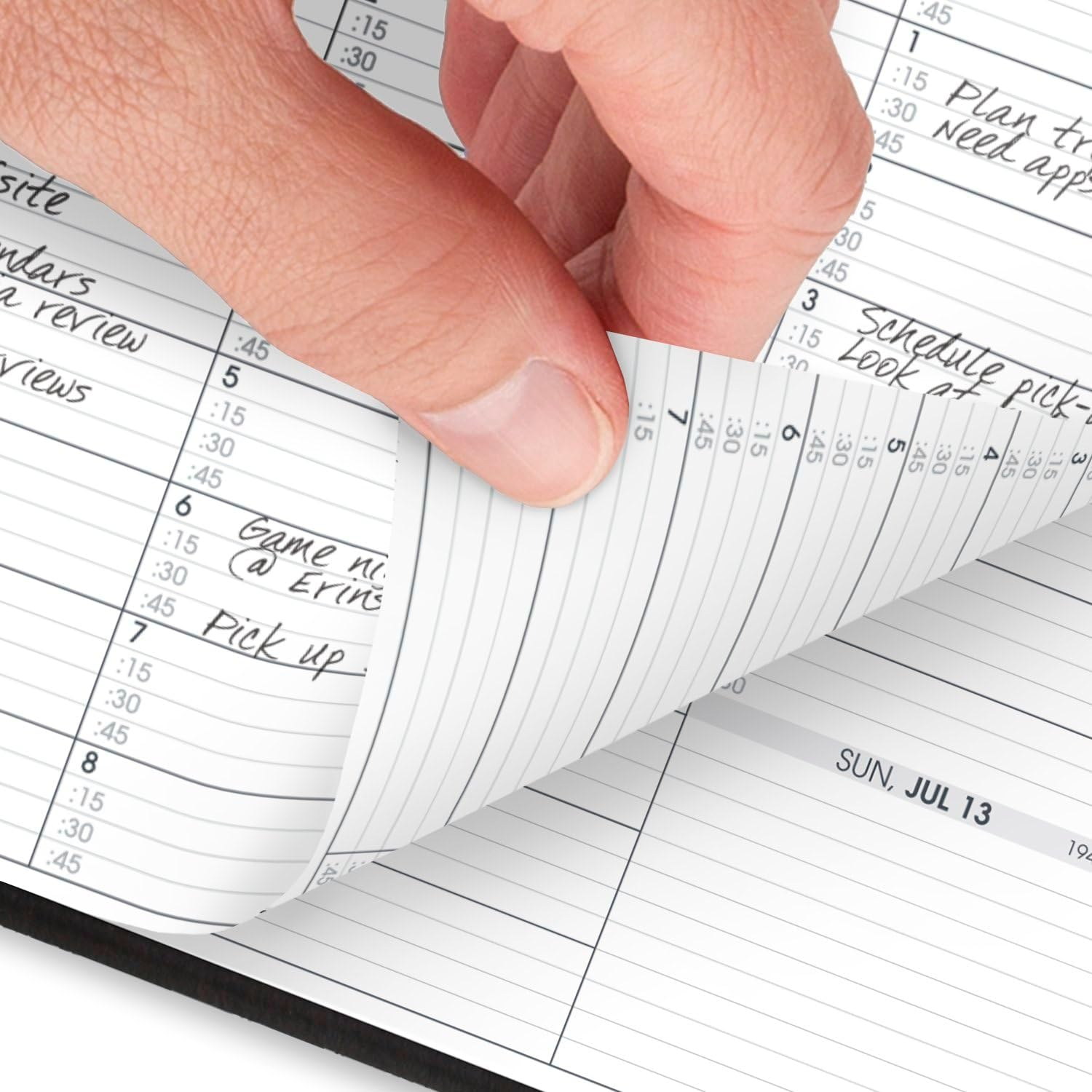 ACADEMIC PLANNING – For academic year planning and beyond, date range covers 14 months from July 2025 — August 2026 with Julian dates GUARANTEED TO LAST ALL YEAR – ACCO Brands will replace any defective AT-A-GLANCE planner that is returned within one year from the date of purchase. This guarantee does not cover damage due to misuse or abuse. INK BLEED RESISTANCE – Plan your schedule without fear of distracting ink bleeding. High-quality paper is designed for ink bleed resistance, which keeps plans neat and legible. WEEKLY OVERVIEW – Weekly spreads feature ruled daily sections with quarter-hourly appointments from 7:00 a.m. - 8:45 p.m. Monday – Friday and 7:00 a.m. - 5:30 p.m. on Saturdays. Each page measures 7" x 8-3/4". ENHANCED ORGANIZATION – Special pages include a 3-year reference calendar, important dates, contacts pages, 10 notes pages and a spacious pocket for extra storage PROFESSIONAL DESIGN – Take charge of your schedule with classic style. Planner has a black faux leather cover and twin wire binding to help prevent snags and secure pages. Stay organized this school year with the AT-A-GLANCE Academic Weekly Appointment Book Planner. For academic year planning and beyond, date range covers 14 months from July 2025 — August 2026 with Julian dates. Guaranteed to last all year.* Plan your schedule without fear of distracting ink bleeding. High-quality paper is designed for ink bleed resistance, which keeps plans neat and legible. Keep meetings, events and more recorded on the weekly spreads that feature ruled daily sections. Weekday appointment times are available quarter-hourly from 7:00 a.m. - 8:45 p.m. Monday – Friday. Saturday times run 7:00 a.m. - 5:30 p.m. Sundays are untimed for flexibility. Each page measures 7" x 8-3/4". Special pages include a 3-year reference calendar, important dates, contacts pages, 10 notes pages and a spacious pocket for extra storage. Take charge of your schedule with classic style. Planner has a black faux leather cover and twin wire binding to help prevent snags and secure pages. *ACCO Brands will replace any defective AT-A-GLANCE planner that is returned within one year from the date of purchase. This guarantee does not cover damage due to misuse or abuse.