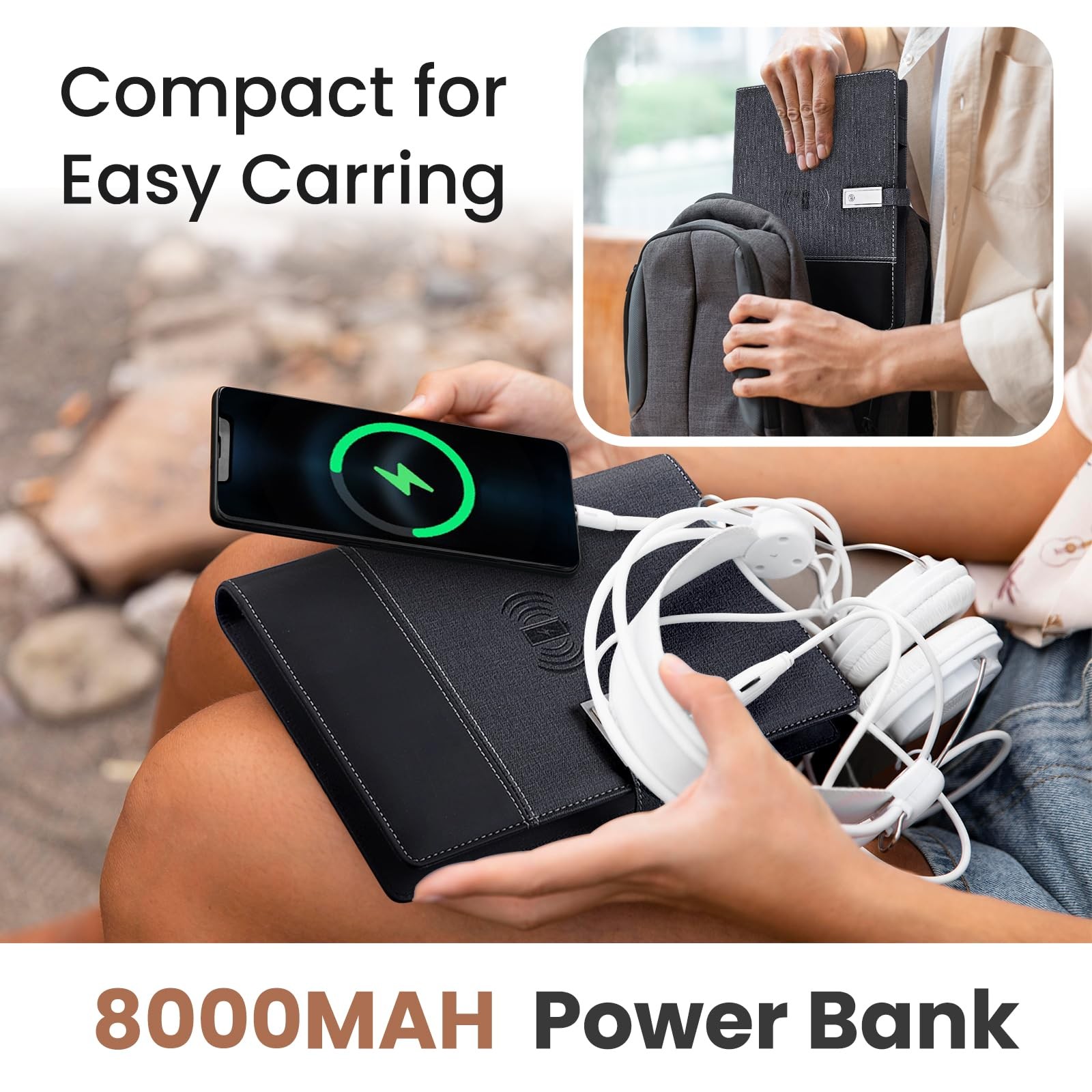 Planner 2025-2026,Personalized Notebook with Power Bank &15W Wireless Charger,Travel Journal with Light, Refillable Notebook,Professional Notebook for Women and Men. 📆【 Design Your Day & Achieve Your Most Important Goals】Strategically plan your year and live each day with purpose. Keep your top priorities front and center, ensuring that you focus on what truly matters.Experience the luxury of 160 pages of 100gsm thick paper in our notebooks, providing a smooth writing surface that is perfect for all types of pens and markers. Elevate your writing experience with the premium quality paper of our notebooks. ⚡【3 in 1 Charger Cable and Power Bank】Stay charged and organized on-the-go with our A5 Journaling Notebooks featuring a built-in 8000mAh power bank - perfect for work or journaling adventures! It can be used as power bank during power outages and emergencies.Ideal for night camping or any outdoor emergency.keep your devices powered up and your thoughts flowing with our high-quality Hardcover Journal. 📈 【 Perfect Hardcover Journal】Leather journal have a comfortable touch. Utilize this black fabric padfolio portfolio binder to store your documents, travel tickets, notes, files, or school assignments; the notepad includes slots for files, business cards, and a pen. Perfect folio professional notepad for work 💡【Night Lights & 15W wireless charger】Illuminate your thoughts with our business padfolio that includes a night light, making late-night writing sessions or reading in bed a breeze. Plus, enjoy the convenience of 15W wireless charging for your devices! Let our stylish business padfolio inspire you with its built-in night light and wireless charging capabilities. 🎯 【Great Value for Money】You will get 1*Daily Journal Planner,1*Wireless Charging Station,1*8000mAh power bank,1*Night Lights,3 in 1 Charger Cable,1*16GB Flash USB Drive,4*Card Slots,1*Gift Box,1*Ballpoint Pens,1*pen loop,160 pages paper. ✅ 【Widely Used & Perfect Gifts】Our Goals Journal is perfect for study, classroom, drawing, group projects, outdoor learning, and more. It's favored by nurses, business professionals, teachers, lawyers, students, men, women, graduated students, and children. It's the perfect gift for back to school, Valentine's Day, Easter, Mother's Day, Halloween, Thanksgiving, and Christmas. This Professional A5 Leather Journals is an impeccable gift that anyone would love to receive!