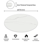 Features and Details: Durable Glass Material: Made of tempered glass, the surface is wear-resistant, heat-resistant, corrosion-resistant, and impact-resistant, ensuring a long service life. Marble Texture: Features a marble pattern printing process, with clear and long-lasting designs that are not easily faded or worn, maintaining their fresh appearance over time. Safety Edge Design: The edges are both aesthetically pleasing and practical, designed with a semi-circular curve for a smooth touch that avoids injury from bumps, enhancing safety during use. Easy DIY Installation and Maintenance: No tools or professional skills required! Simply place this glass tabletop directly on the existing damaged surface or a prepared base to instantly elevate the space's style. The smooth surface is very easy to clean. Widely Applicable Scenarios: Seamlessly integrates into various environments, widely used in hotels, restaurants, and everyday home settings. It can be paired with lobby tables, business conference tables, dining tables, terrace tables, or coffee tables, among others. Specification: Color: White Material: Tempered Glass Item Weight (lbs.): 7.92 / 15.18 / 17.38 / 19.8 / 25.3