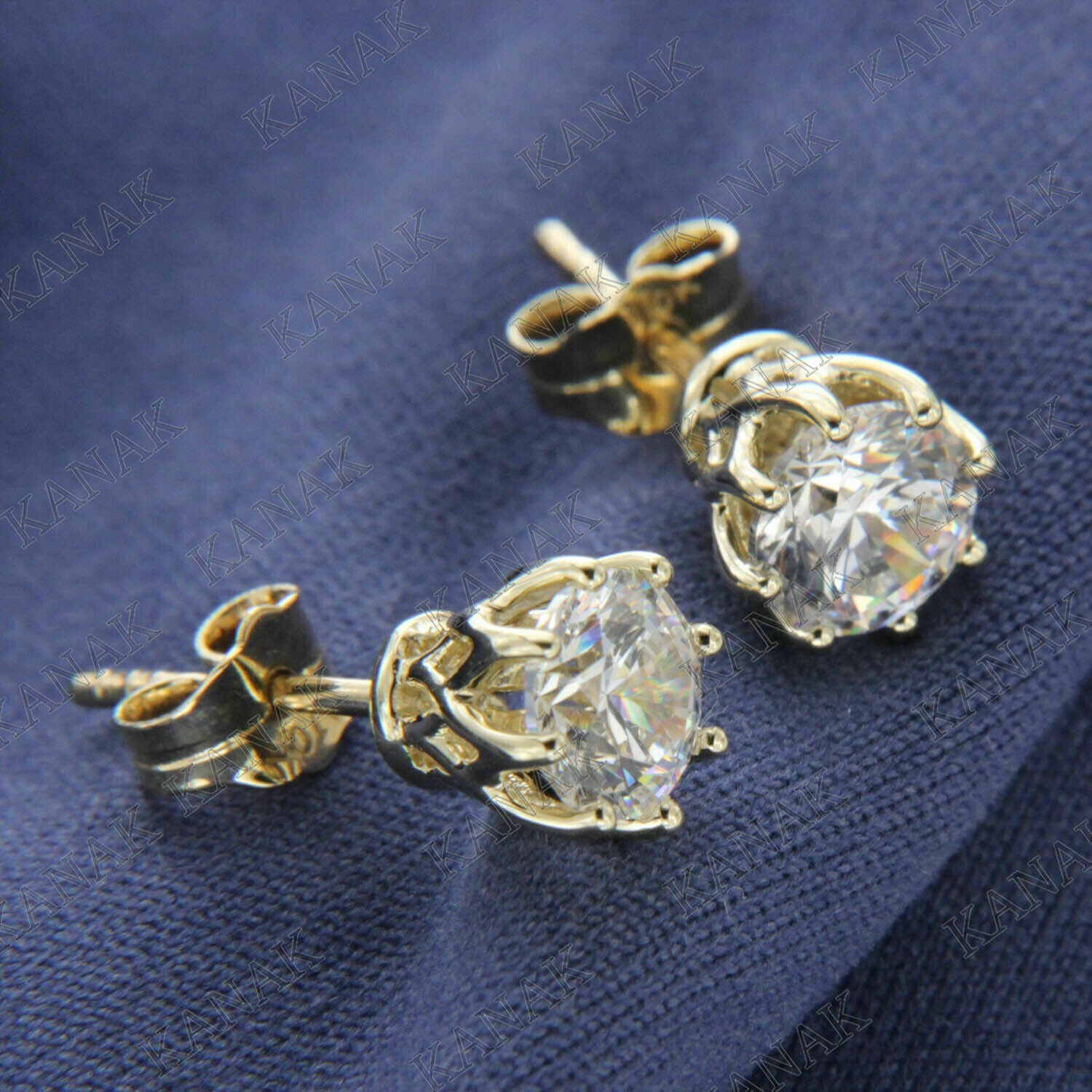 Solitaire Stud Earrings 2.0Ct Certified Moissanite 14k Yellow Gold Plated Silver Description Product Details Metal Sterling Silver Metal Purity 925 Metal - Main Stone Details Stone Type Moissanite Stone Shape Round Stone Color D Stone Clarity VVS1 Stone Treatment Natural Total Carat Weight (approx.) 2.00 TCW Jewelry Type Earrings What sets us apart? Handcrafted Made to order NICKEL FREE - hypoallergenic & Environmental friendly highest quality Customize your dream jewelry ENGRAVEPERSONAL MESSAGES Shipping Shipping through India Post only Tracking on your local postal website Express shipping reaches in 5 to 7days Economy in 15 to 20 days after it has been shipped Check the exact handling time in each product to know when they can be shipped The days mentioned here are approximate Custom duties, taxes, VAT etc are buyers responsibility. Please check at your port before ordering Terms of Sale If we do not receive the ring size within 3 days we ship 7 US size for woman and 9 for men Please ask all the questions before ordering If you have a specific date you need the jewelry by, please message us If you have any questions, please message us Customized product cannot be returned for refund or replacement C ontact Us If you are happy with our product don't forget to leave us your feedback. Your feedback is very important to us; if you are unhappy for any reason please contact us