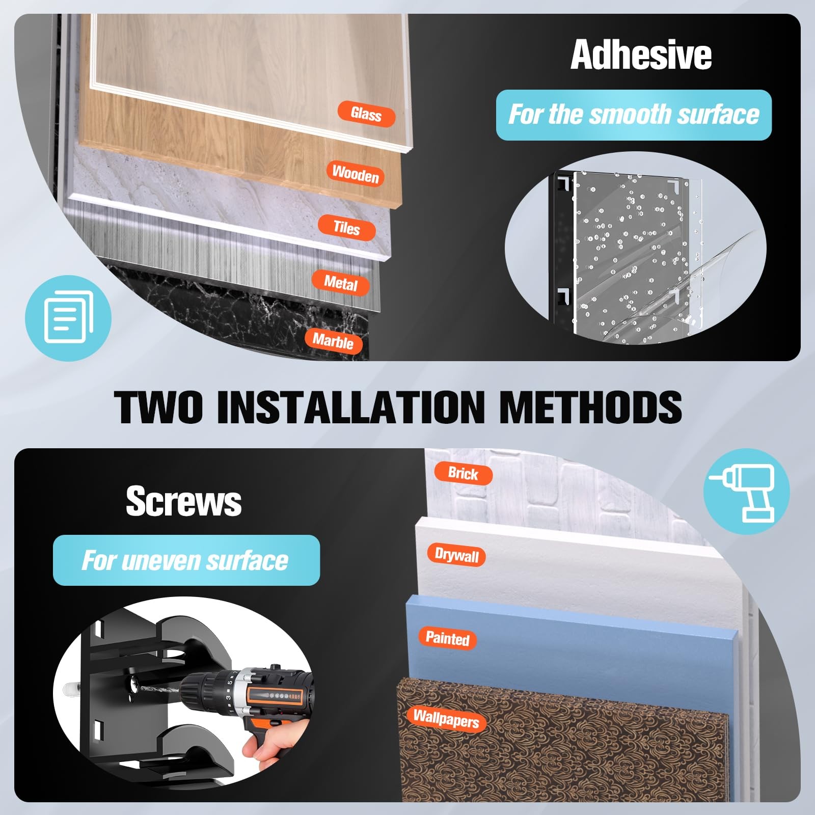 Why choose our hook-up organizers? If you have too many baseball caps with nowhere to put them. If you come across hooks that need to be glued all over an entire wall or even ruin a wall. If you have worked hard to organise your hats and need to lift all the hats above when you need to remove the one you want from the lower tier... Choose our one-piece long bar hooks. Simply stick a sticky plate on a smooth surface or drill a small hole in an uneven surface to carry up to 10 hats/each. Our hat hooks are one hat, one compartment - easy to reach. Super strong adhesive holds a maximum of 20lbs. hang your hats all over without any problem. In addition, we have upgraded the design of rounded bayonet at each hook, so that your hat is more firmly on our hat hook, not easy to fall off. Ideal for hanging anywhere you want: behind doors, in wardrobes, on display walls, in wardrobe door cabinets and more! Product size: 14*2.36*1.3inches You will receive: · Hat organizer x2 · Adhesive board x4 · Expansion screws x4 If you have too many hats with nowhere to put them, choose our hat organizers! ONE HAT, ONE LAYER: Hat organizer is designed with one hat and one layer for easy access. Unlike hat hooks on the market, it is difficult to remove the bottom layer of hats. No need to stack layers, even the bottom layer of hats can be easily removed by gently picking up the brim TWO WAYS TO DISPLAY: Hat organizer for baseball Caps can be hung using hat buttons and can be displayed frontally for a beautiful look while keeping your hats in tip-top shape. It can also be hung vertically using the hat adjustable cord for quick and easy access 2-PACK, HOLDS UP TO 20 HATS: Hat Hanger Holder comes in a 2-pack, with a large storage capacity while taking up little space, each holds 10 hats and measures only 14*2.36*1.3 inches. Can be hung on the wall, behind the door, door frame, closet, can be displayed and stored, beautiful and practical TWO INSTALLATIONS METHODS: Hat Rack for wall can be installed in two ways: self-adhesive and screw drilled holes. You can choose the appropriate method according to the usage scenario. Note: Due to the firm sticking, please confirm the direction and position before sticking, the part of the wall plate with holes is the top to avoid forming repeated tears WIDE APPLICATION: Baseball cap organizer self-adhesive can be used on smooth surfaces such as closets, doors, marble, tiles, refrigerators and more. If you need to install on rough surfaces, please be sure to use screws to drill holes for installation, such as painted walls, concrete walls and other uneven surfaces. Our hat organizer can create more storage space in limited space. It is your best choice for storing baseball caps!