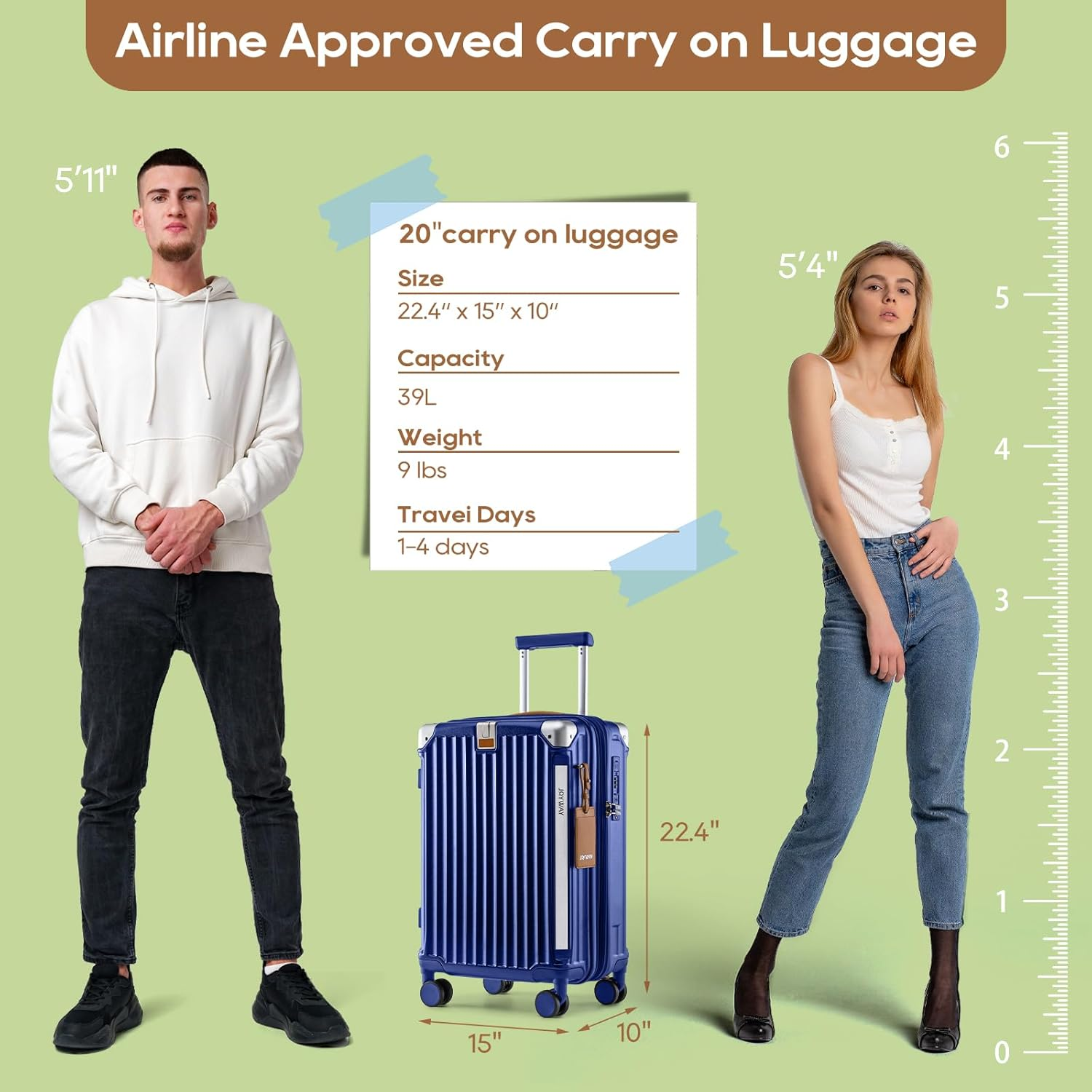 High-Quality Luggage Set: Crafted from PP+ABS material, this luggage set offers a perfect balance of lightweight construction and durability. The hard-shell finish resists scratches, making it an ideal option for both business and personal travel. The 20" carry-on luggage (15"*10"*22.4", 9 lbs) and matching handbag (16" x 2" x 8.3", 1.3 lbs) provide a complete two-piece set for all your travel needs. Expandable Design with Spinner Wheels: This luggage features a 25% expandable capacity, providing extra space for long trips or souvenirs. Equipped with 360-degree rotating dual spinner wheels, it moves smoothly in any direction, ensuring effortless navigation. Adjustable Handle & Hooks: The suitcase comes with a sturdy, ergonomic 3-step telescopic handle, allowing easy control in tight spaces. The 20-inch luggage includes a front hook for carrying additional bags and a side hook for securely holding boarding passes. Ultra-Durable Zips & Organized Interior: YKK zippers offer extra strength and durability, protecting against wear and tear. Inside, the luggage features mesh pockets and elastic cross straps, keeping your belongings neatly organized and secure during travel. Multifunctional Luggage: This suitcase includes TSA-approved combination locks for added security. It also comes with a convenient luggage cup holder to keep your drinks within reach and USB and USB-C ports to charge devices (power bank not included), ensuring you travel comfortably and stay connected. Product Description The video showcases the product in use. The video guides you through product setup. The video compares multiple products. The video shows the product being unpacked. hero-video Merchant Video Smart Luggage Interior Details Large Travel Bag Hardside Luggage with TSA Lock Spinner Double Wheels Add to Cart Add to Cart Add to Cart Add to Cart Customer Reviews 4.4 out of 5 stars 1,438 4.4 out of 5 stars 1,438 4.3 out of 5 stars 221 4.3 out of 5 stars 221 4.3 out of 5 stars 221 4.3 out of 5 stars 221 Price $75.99 $ 75 . 99 $69.99 $ 69 . 99 $199.99 $ 199 . 99 $199.99 $ 199 . 99 — — Luggage Size 20“ 20“ 20“/24“/28“ 20“/24“/28“ 20“/24“/28“ 20“/24“/28“ Material ABS ABS ABS ABS ABS ABS Features Lightweight Lightweight Lightweight Lightweight Lightweight Lightweight Usage Scenarios Business or travel Business or travel Business or travel Business or travel Business or travel Business or travel Suitable for People Universal men and women Universal men and women Universal men and women Universal men and women Universal men and women Universal men and women