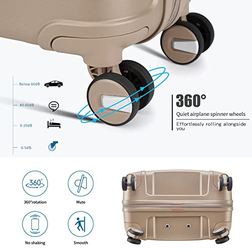 Absolutely love this 2-piece luggage set! The golden color is sleek and stylish, while the lightweight yet durable polypropylene material makes traveling a breeze. The spinner wheels glide smoothly, and the TSA lock adds extra security. The mini cosmetic case is perfect for toiletries. Fast delivery and trusted seller—highly recommend for hassle-free trips!