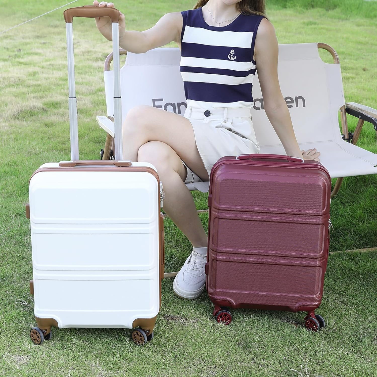 【20 INCH SPINNER LUGGAGE DIMENSIONS】Overall Dimensions: 20.3" x 15" x 8.3" (including wheels and handles). Packing Dimensions: 18.3" x 14.76" x 8". Weight: 5.5 lbs. CAPACITY: 35.7L. This international carry-on luggage maximizes your packing capacity and meets most carry-on size restrictions for both domestic and international travelers aiming to travel light. It's suitable for 3 - 5-day trips! 【DURABLE + 2-YEAR LIMITED WARRANTY】Made from a protective, lightweight hardside ABS shell, this luggage is scratch-resistant, pressure-resistant, dirt-proof, and waterproof. Each Kono luggage undergoes extremely strict quality control test standards to ensure that our products can endure the harsh conditions of modern transportation. Moreover, Kono offers a reliable 2-year limited warranty service! 【TELESCOPIC HANDLE + SHORT HANDLE】The adjustable 3-level aluminum telescoping handle enables you to easily and quickly maneuver in tight spaces. It is sturdier than most telescoping handles on the market. Additionally, there are soft - sided handles. They are convenient for easy carrying when you're in a hurry. Moreover, these soft - sided handles are extremely useful when you need to lift the suitcase, especially when it's heavy. 【CARRY ON LUGGAGE WITH LOCK + WHEELS】The side-mounted TSA lock, combined with a smooth YKK zipper, serves to deter theft. This ensures that only you or a TSA agent can easily access your belongings during travel, providing added security and convenience. The multi-directional spinner wheels offer 360º effortless mobility, reducing the strain on the traveler's wrist. Additionally, the wheels have been re-engineered to be lightweight. 【PRATICAL INTERIOR FOR WELL ORGANISED】Kono hard shell carry on luggage designed with 2 roomy fully-lined compartments. The packing straps keep your clothes in place, a zipper mesh pocket for anything you want to keep separate. Not only a perfect small luggage for yourself, but also a cute gift for your families, friends, or school children. Product Description Kono Hardside luggage with spinner wheels Go where you haven't INTERNATIONAL TSA-APPROVED LOCK Slide Mounted TSA combination zipper lock to keep your belongings safe and secure to your destination. With a built in combination lock, the Kono cases are good to go no matter where you are. No keys required! Giving passengers peace of mind. HAPPY TRAVEL with Kono LUGGAGE When you have to transfer between different modes of transportation or navigate crowded areas, you can easily lift or carry our luggage. Discover more the journey with our lightweight luggage. 360° DOUBLE SPINNER WHEELS Durable & Silent, Moving Easily, Smooth Rolling Wheels. Sturdy telescopic handle Push-botton locking system , aluminum handle locks firmly into place when extended. Shacking is strictly controlled within 1 CM. Reinforced grip handles Provide convenient handling for different situation , meanwhile save your energy. Sturdy, elastic and not easy to break. Side bumper feet strategically placed to elevate the luggage slightly above the ground, preventing wear and tear over time . Practiacl and protective nice design . Durable YKK zipper Allow travelers to effortlessly open and close the luggage Smoothly . Reinforced and upgraded zipper closure system . GO WHERE YOU HAVEN'T Kono luggages go through insanely strict quality control test standards, to ensure our products can withstand the rigour of modern transport. Also Kono offers trustful service! SPACIOUS INTERIOR Whether it's a short weekend getaway or a long-haul adventure, Kono luggage provides the room you need to pack with ease and organization. EXPANDABLE DESIGN for 28 INCH SUITCASE With an extra 15% packing space—say goodbye to cramped travel and hello to comfort. Best Luggage Suitcase for Gift Choice! The video showcases the product in use. The video guides you through product setup. The video compares multiple products. The video shows the product being unpacked.