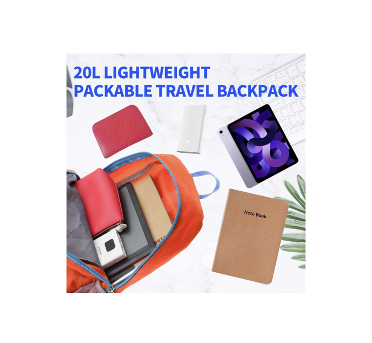Hiking Backpack Orange 20L Lightweight Travel Backpack Waterproof Foldable- Day Pack for Outdoor Camping and Small Travel Backpack Laptop Backpack for Men and Women waterproof backpack for travel Front zipper pocket to carry an iPad, mobile phone, and power bank 2 side mesh pockets water bottle and foldable umbrella Interior pocket books, pens, and study supplies. Belongings pocket magazine,computer,clothes,etc There is a hidden zipper pocket in the back to keep your wallet, cell phone and other valuables from being stolen. foldable backpack for travel lightweight Storage 20l lightweight backpack People Adults, Outdoor Sports, Cycling, Camping, Hiking, Traveling Function Waterproof, lightweight and foldable, day backpack, sports backpack, foldable hiking poles and yoga mat. Scenarios camping, lightweight day pack, travel backpack for men, lightweight backpack for travel, travel hiking day pack, hiking backpack for women